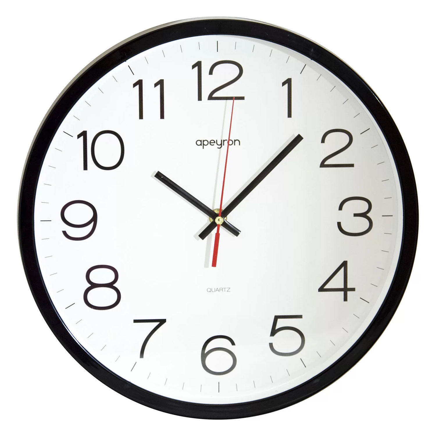 Настенные часы Apeyron представляют собой часы с корпусом из экологичного пластика. Лицевая сторона часов защищена минеральным стеклом. На циферблате белого цвета расположены арабские цифры и три стрелки. Часы сохранят тишину в помещении благодаря использованию бесшумного механизма плавного хода, который работает от батарейки стандарта АА (не входит в комплект).