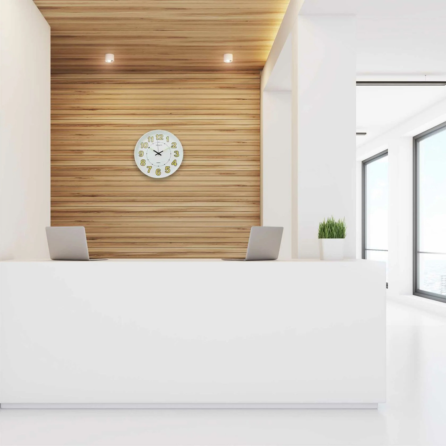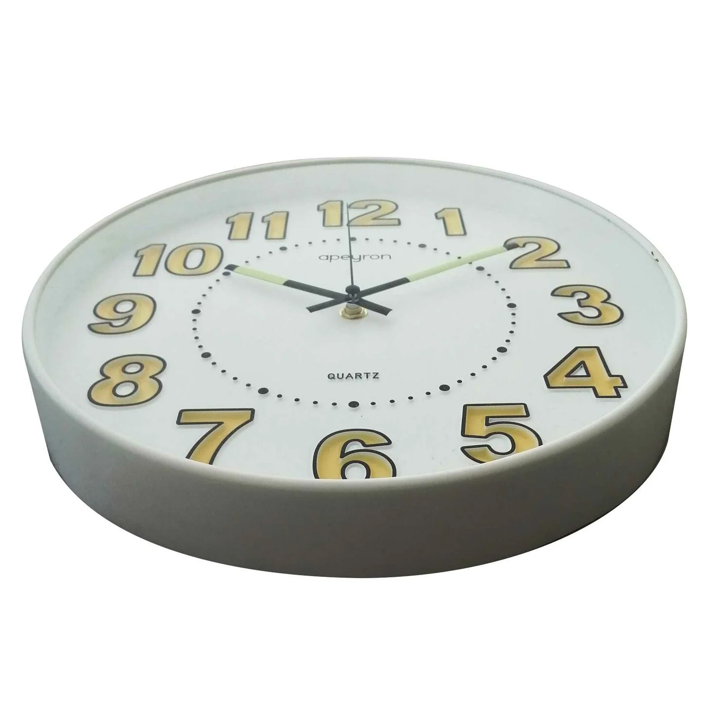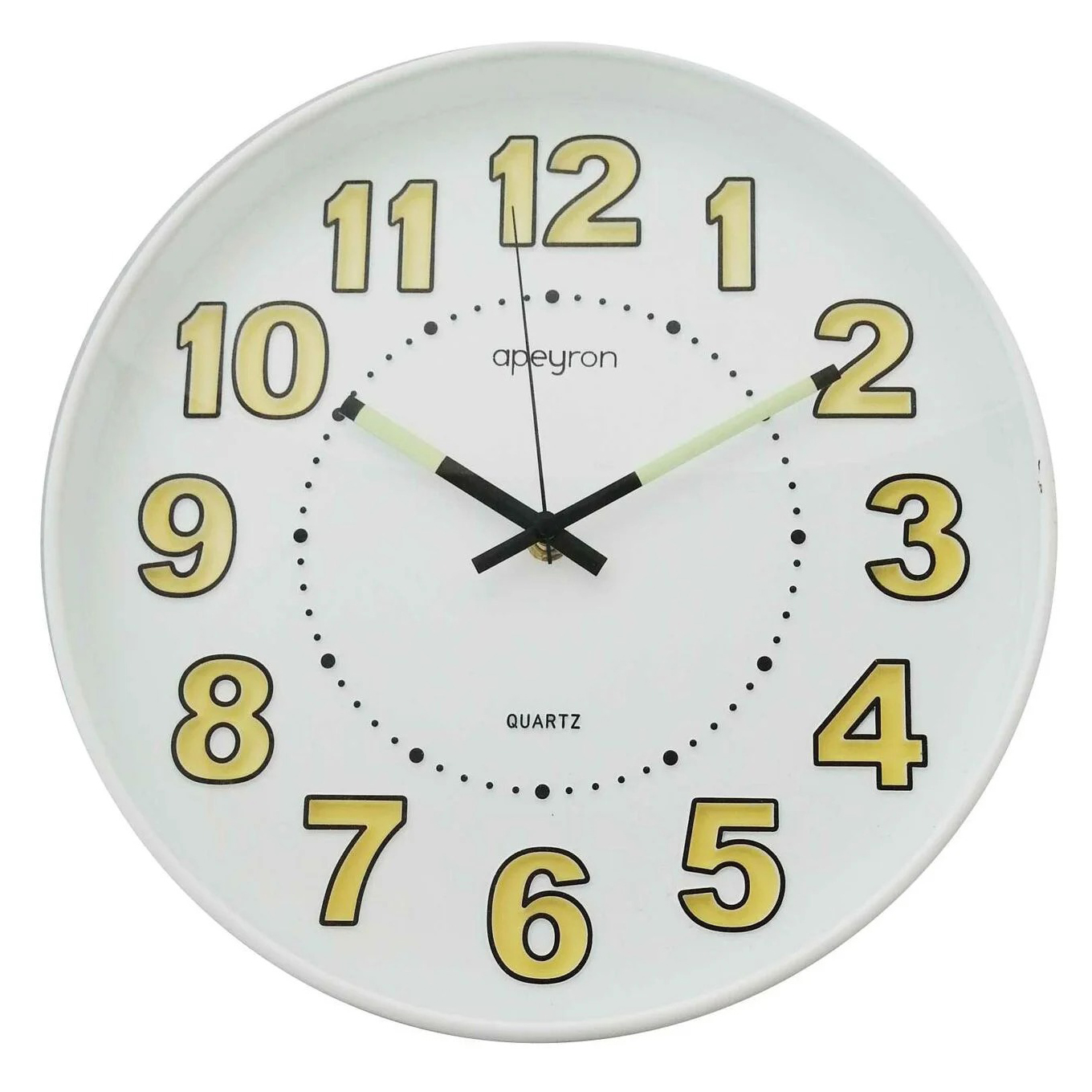 Настенные часы Apeyron представляют собой часы с корпусом из экологичного пластика. Лицевая сторона часов защищена минеральным стеклом. На циферблате белого цвета расположены арабские цифры и три стрелки. Часы сохранят тишину в помещении благодаря использованию бесшумного механизма плавного хода, который работает от батарейки стандарта АА (не входит в комплект).