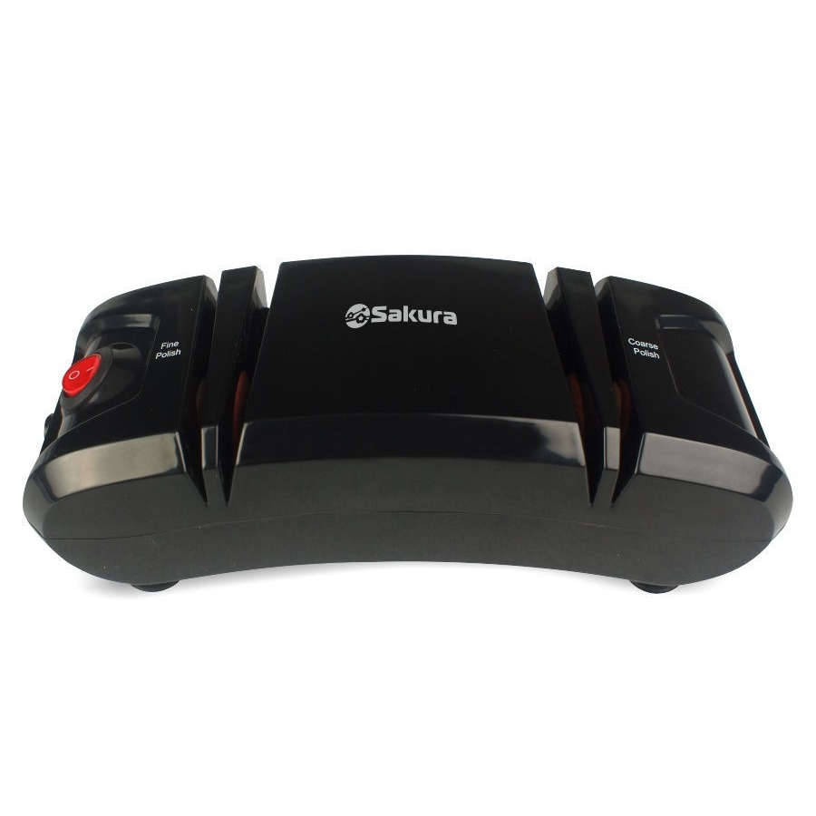 Точилка для ножей SA-6604BK устройство, с использованием которого можно быстро и легко вернуть остроту ножам. А самое главное - нож остается острым гораздо дольше. Заточка и полировка у данной модели с помощью двух точильных кругов, с автоматической регулировкой угла. Точилка подходит для ножей из стали, стальных углеродных сплавов, нержавеющей стали.