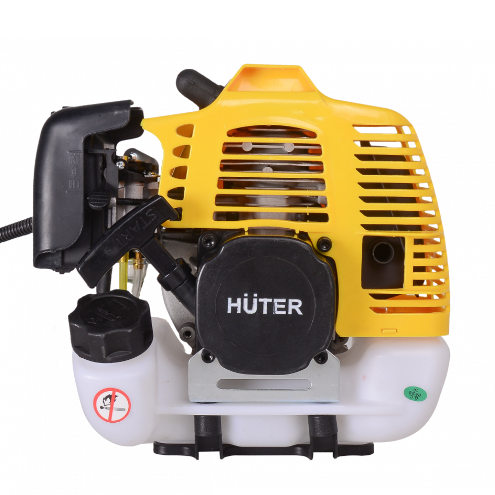- Бензиновый триммер Huter обладает полной автономностью, можно работать где угодно без связи с источниками энергии.