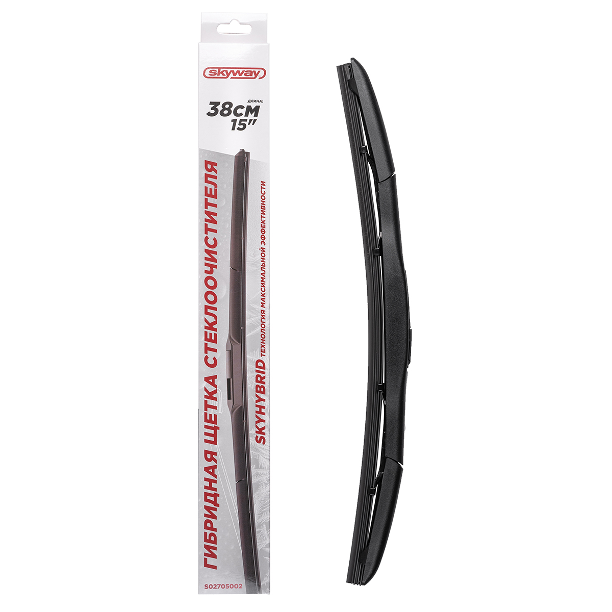 Щетка стеклоочистителя гибридная SKYWAY 38см/15"- в основании щетки находится металлический каркас, который защищен от внешних воздействий окружающей среды спойлером из морозостойкого пластика. Каркас щетки обеспечивает максимальное соприкосновение стеклоочистителя со стеклом лобового изгиба, тем самым создавая надежное прилегание по всей длине к стеклу, даже на высоких скоростях, при этом защищая от пыли и влаги. Графитовое покрытие чистящей резинки исключают риск деформации ленты при эксплуатации и обеспечивает тихую работу дворников.