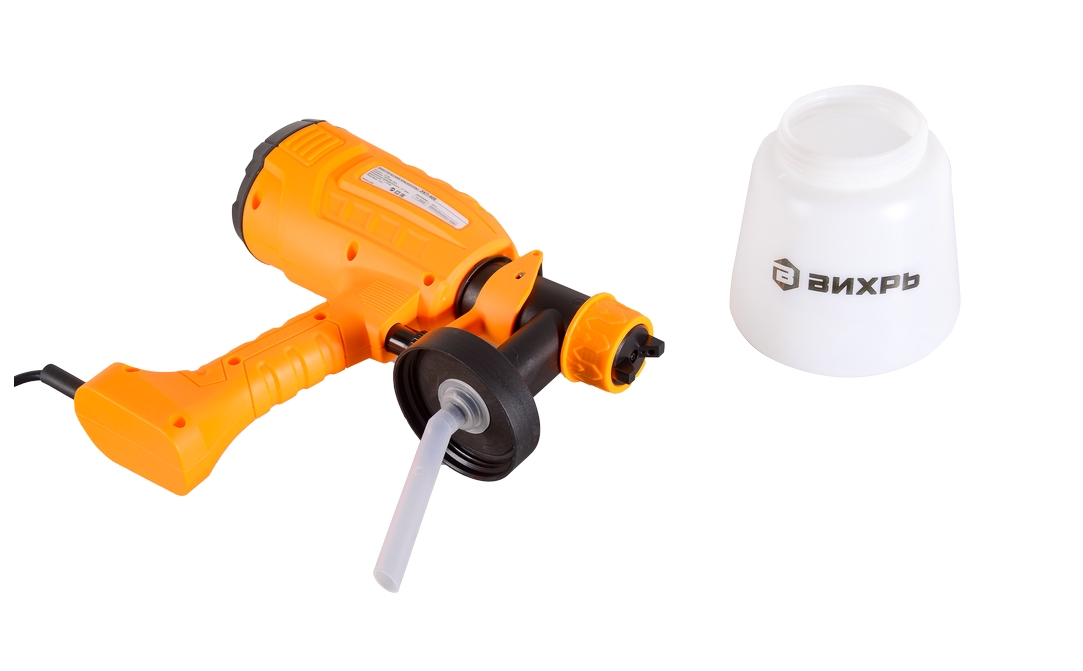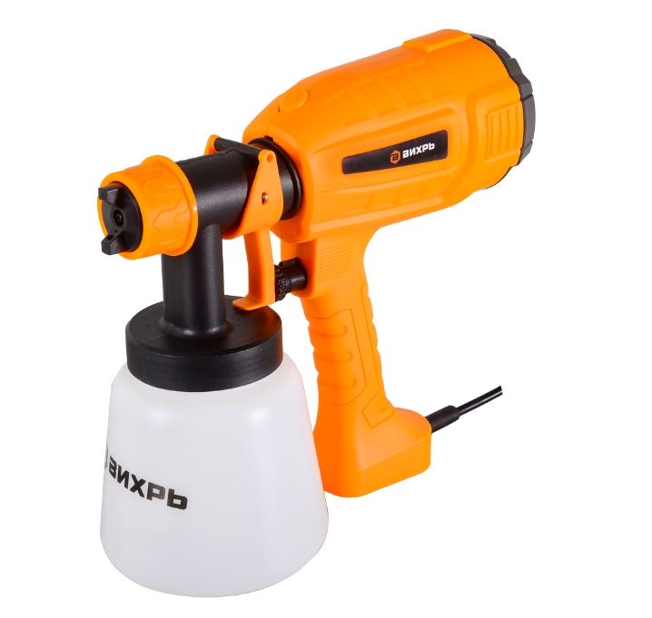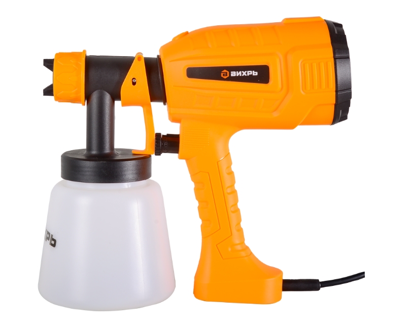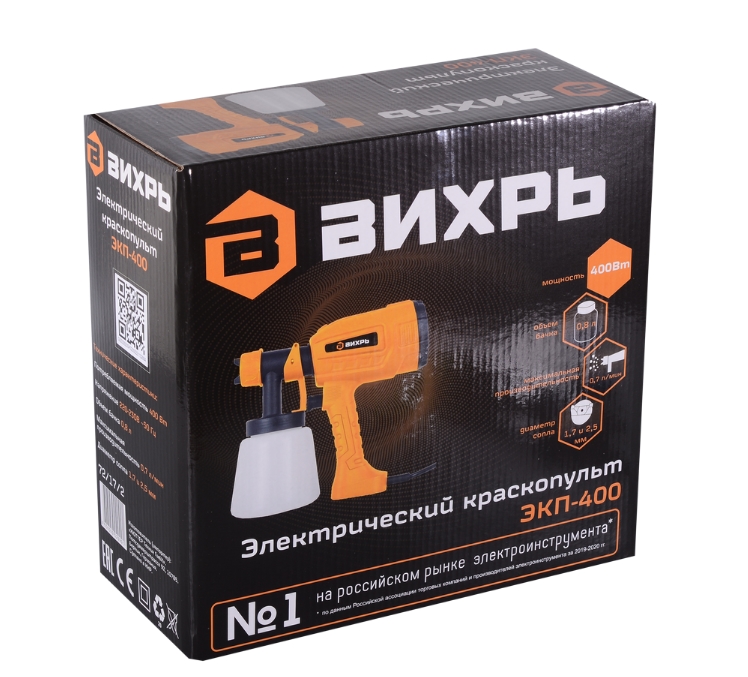 Краскораспылитель ВИХРЬ ЭКП-400 - простой в эксплуатации инструмент для нанесения краски и других составов (лака, грунтовки, пропиток). Вещество из устройства выделяется под давлением встроенного насоса. ЭКП-400 имеет форму пистолета с расположенным снизу бачком. Данная конструкция компактна и удобна для бытового использования, транспортировки и хранения.