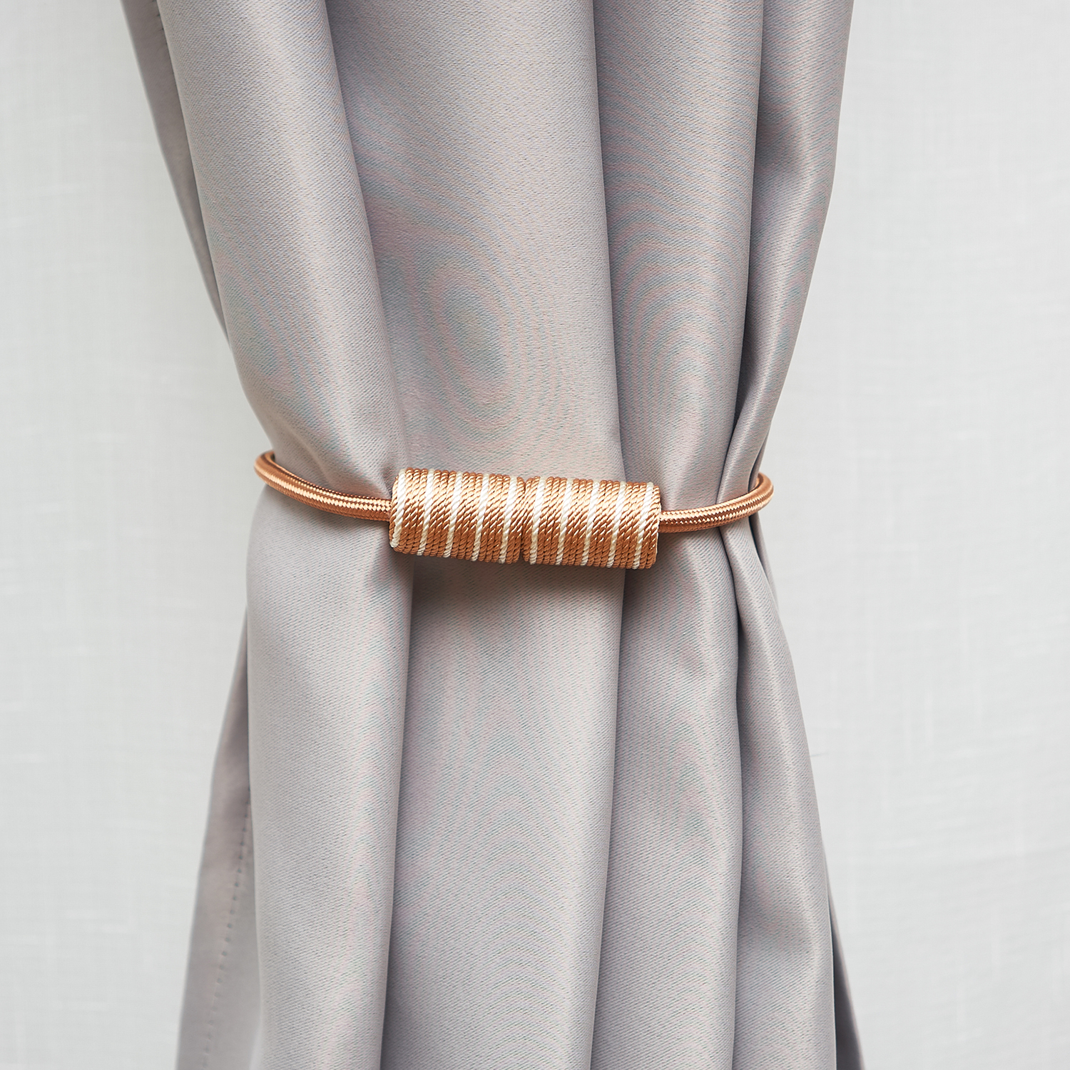 Подхват для штор Камея выполнен из проволочного шнура в текстильной цветной оплётке, с помощью него, штора захватывается и фиксируется соединением намагниченных элементов. В результате, драпировка ткани преобразовывается, а крой шторы визуально изменяется. Подхват магнитный для штор впишется в любой стиль интерьера, благодаря лаконичному дизайну. Подходит для гардин любой плотности, как для тяжёлых портьер, так и для лёгких тюлей.