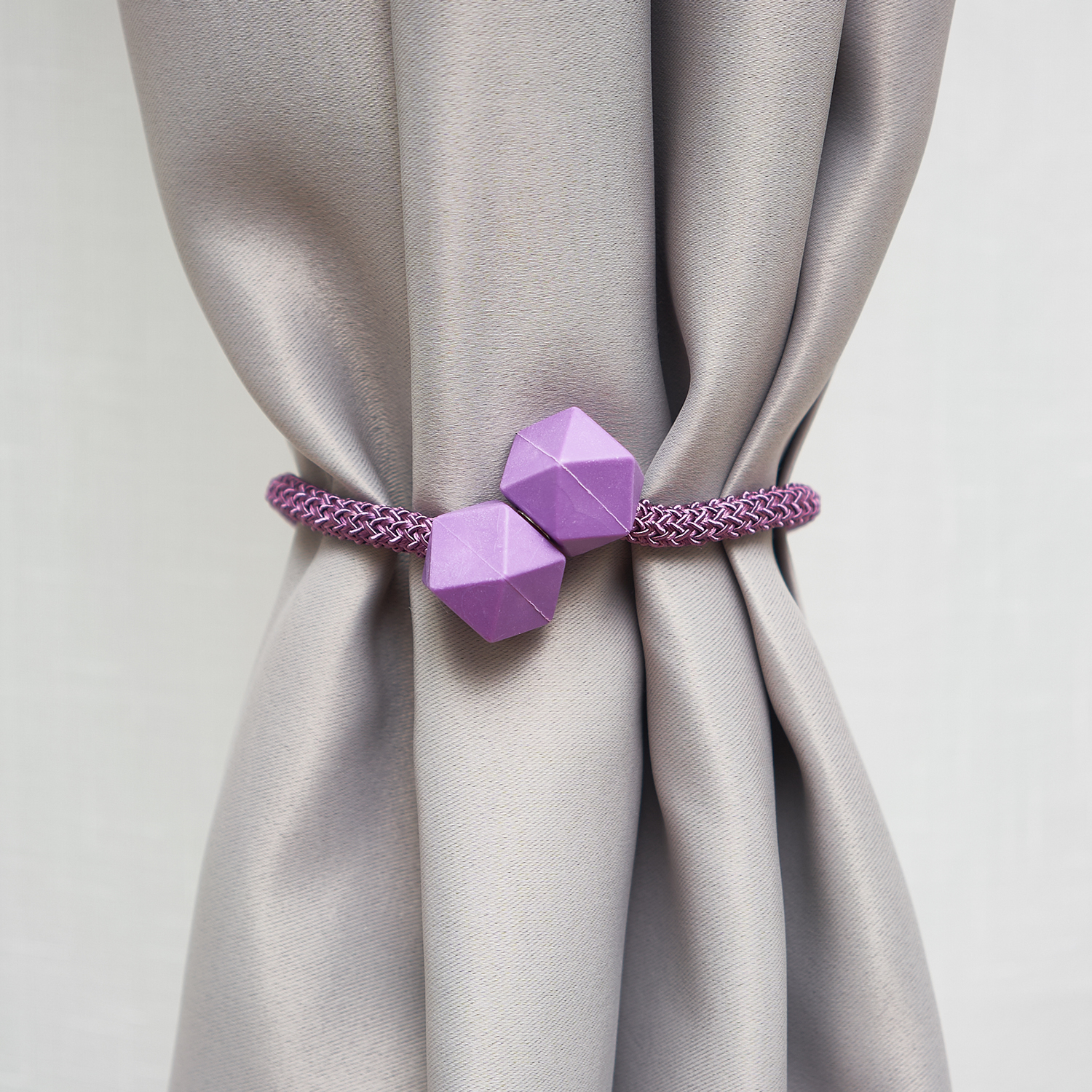Подхват для штор Кубики выполнен из проволочного шнура в текстильной цветной оплётке, с помощью которого штора захватывается и фиксируется соединением намагниченных элементов. В результате, драпировка ткани преобразовывается, а крой шторы визуально изменяется. Подхват магнитный для штор впишется в любой стиль интерьера, благодаря лаконичному дизайну. Подходит для гардин любой плотности, как для тяжёлых портьер, так и для лёгких тюлей.