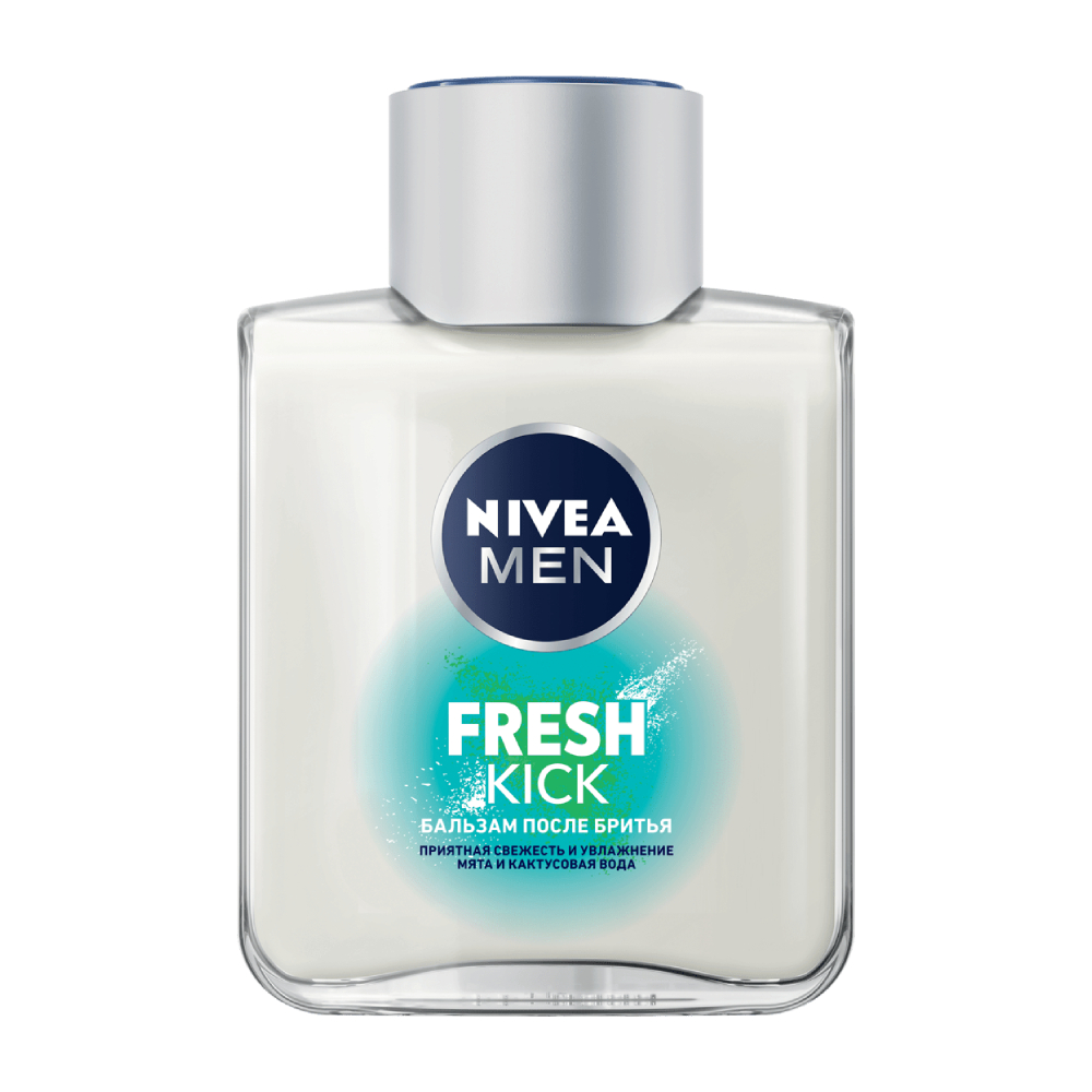 Бальзам после бритья NIVEA MEN с мятой и кактусовой водой дарит приятную свежесть коже и успокаивает ее после бритья. Мята - натуральный ингредиент в составе, который мгновенно придает ощущение свежести, а кактусовая вода придает коже мягкость, снимая раздражение. Попробуй новое деликатное увлажнение + свежесть после бритья с NIVEA MEN. Будь естественно свеж вместе с NIVEA MEN Fresh Kick.