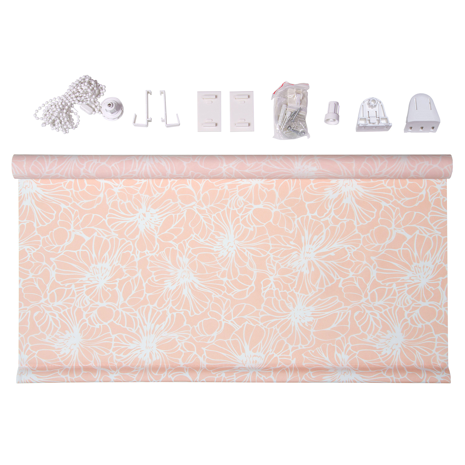 - комплект фурнитуры белого цвета: подъемный механизм с регулируемой цепочкой управления (длина цепочки 180 см), кронштейны пластмассовые универсальные (2 шт)