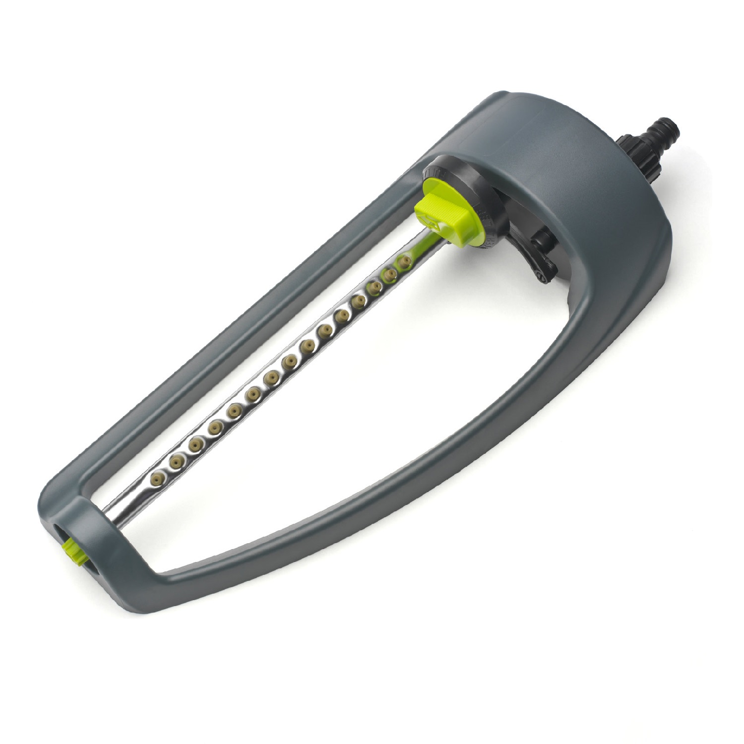 Четурехугольное дождевальное устройство, 15 отверстий. При производстве данного устройства использовался только качественный пластик и алюминий, что позволяет не бояться пользоваться устройством в полной мере. 15 отверстий, 3 режима работы обеспечивает необходимый Вам уровень орошения. Макс. площадь орошения 240м дает возможность увлажнить почву практически любого участка, а длина струи 17 м позволит поливать даже самые труднодоступные участки.