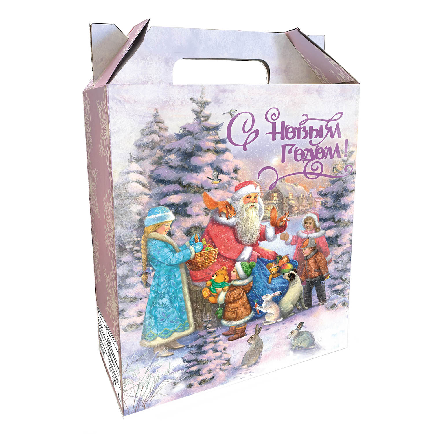 Новогодняя упаковка – это неотъемлемая часть подарка, его логическое завершение. В красивой новогодней упаковке подарок начинает "играть" и смотреться более выигрышно по сравнению со своими неупакованными братьями. Новогодняя подарочная коробка для конфет - это отличная подарочная упаковка с ярким новогодним дизайном, которая может заменить подарочный пакет. Подарочная коробка Новогодний праздник изготовлена из плотного картона с ярким праздничным принтом и удобной ручкой. Такая праздничная упаковка станет отличным решением на подарок для мальчика или на подарок девочке. Соберите набор любимых сладостей по своему вкусу и упакуйте их в оригинальную коробку для новогоднего подарка.