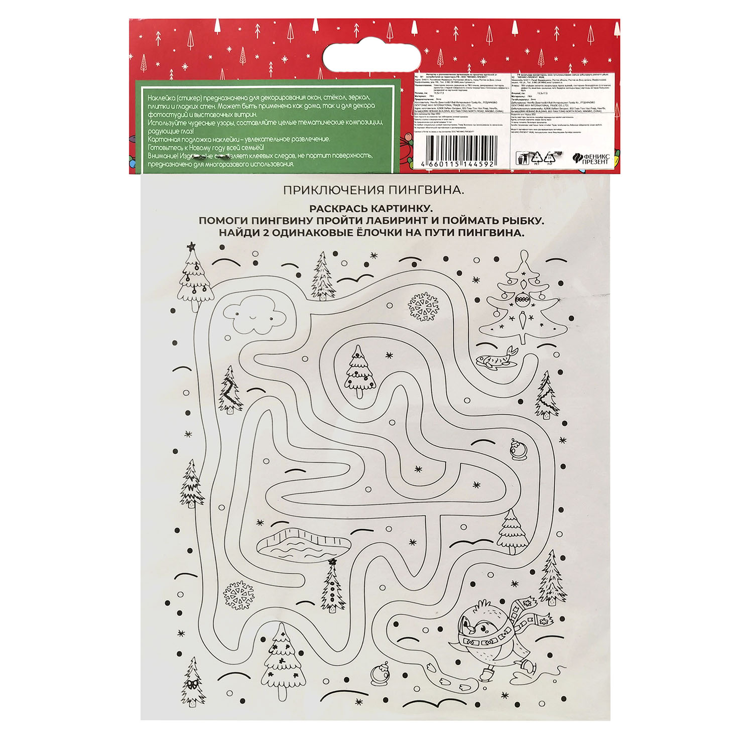 Наклейка предназначена для декорирования окон, зеркал, стекол, плитки и гладких стен. Может быть использована как для домашнего применения, так и в качестве декора фотостудий и выставочных витрин. Используйте чудесные узоры, составляйте целые тематические композиции, радующие глаз! Картонная подложка наклейки представляет собой раскраску. Готовьтесь к Новому Году всей семьей! Изделие не оставляет клеевых следов, не портит поверхность, предназначено для многоразового использования. На наклейку нанесен белый объемный рисунок из мерцающих блесток, который создает эффект морозных узоров.