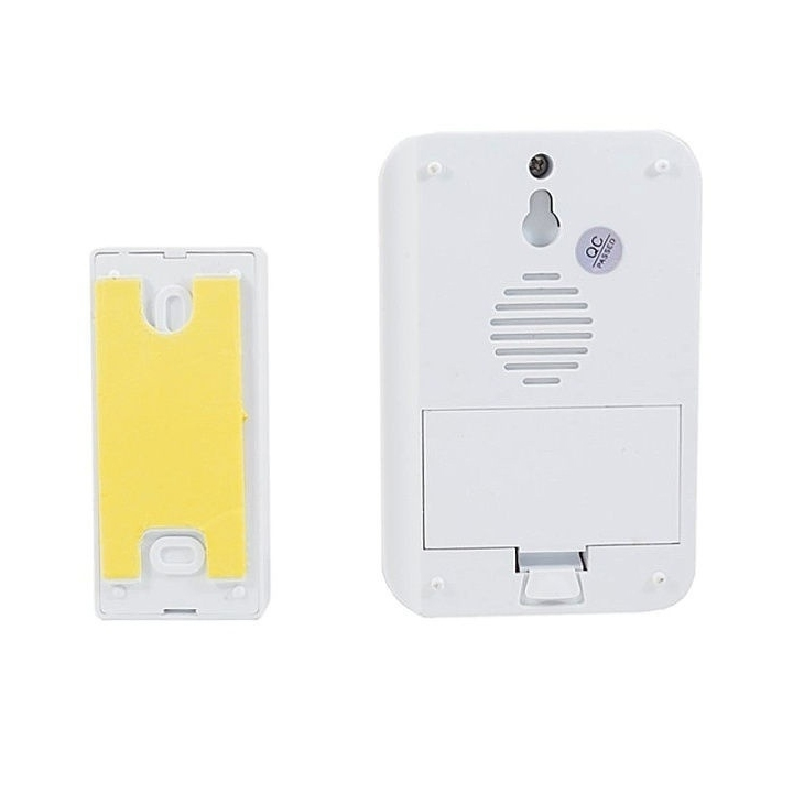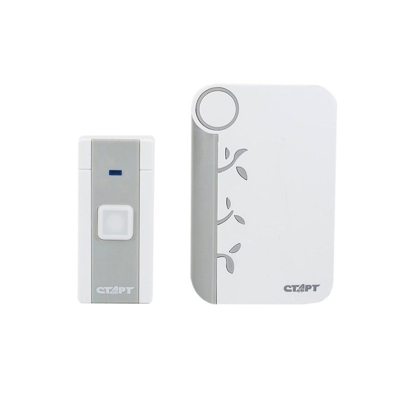 - изделие представляет собой небольшой пластиковый корпус, оснащённый миниатюрной кнопкой, а также стильный динамик. Его можно «вынести» от «родительского» устройства с батарейками на расстояние до 100 м. При этом – никаких соединяющих проводов и кабелей. Динамик заставляет издавать сигналы или мелодии (всего их 36 на выбор) радиочастотная волна