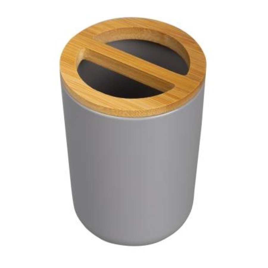 Подставка настольная Gray для зубных щёток с предусмотренным конструкцией местом для тюбика зубной пасты, а так же других предметов гигиены (бритвенный станок, кисточки) изготовлена из пластика и бамбука. Влагоустойчива. Коллекция настольных аксессуаров Gray выполнена из легкого пластика в сочетании с бамбуком. Простой и лаконичный дизайн аксессуаров и их универсальная цветовая гамма впишется в любой интерьер ванной комнаты.