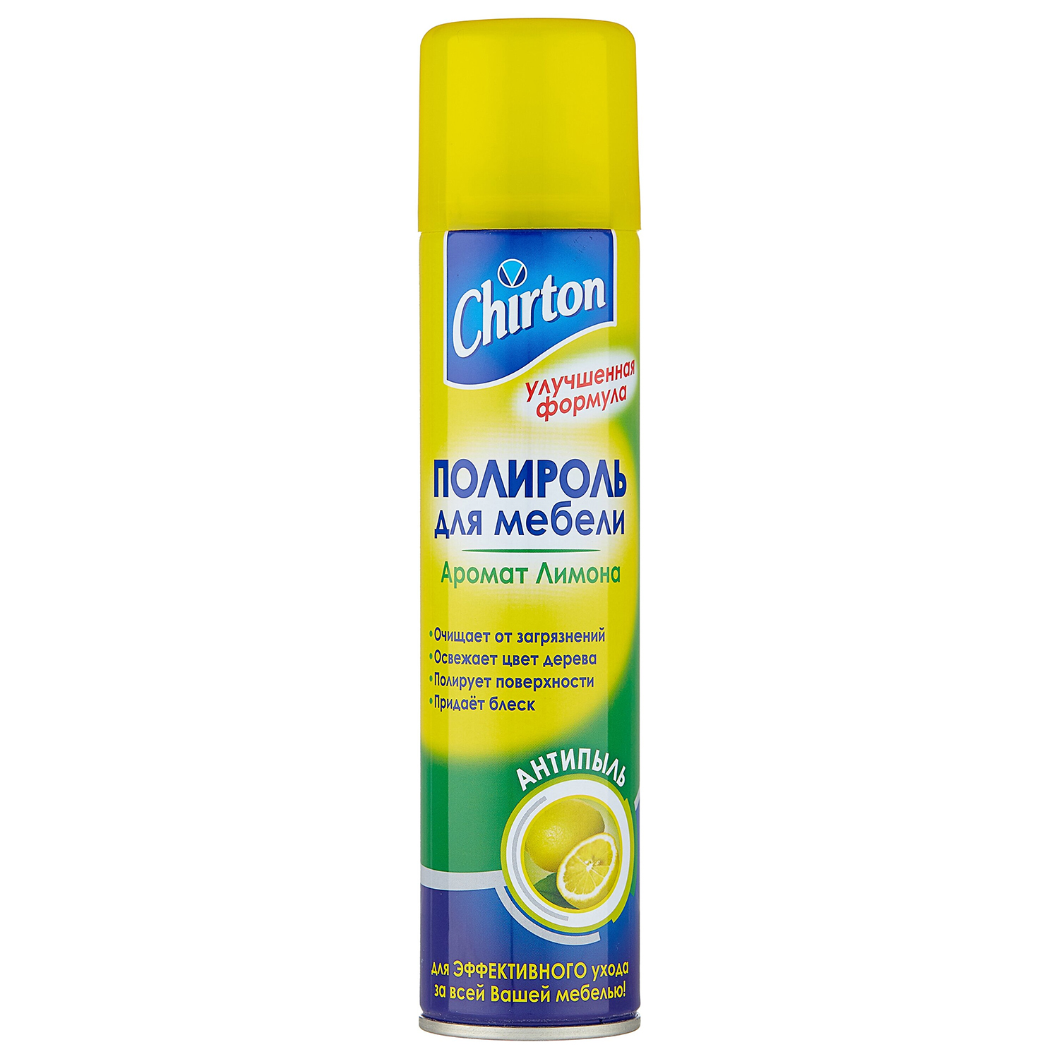Полироль Chirton Антипыль обеспечивает превосходный уход за мебелью. Средство устраняет пыль и загрязнения, полируя поверхность и придавая блеск. Полироль обладает приятным ароматом, который наполняет дом уютом. Средство подходит для деревянных, керамических, мраморных и эмалированных поверхностей. Полироль не царапает и не повреждает поверхности, предотвращает оседание пыли.