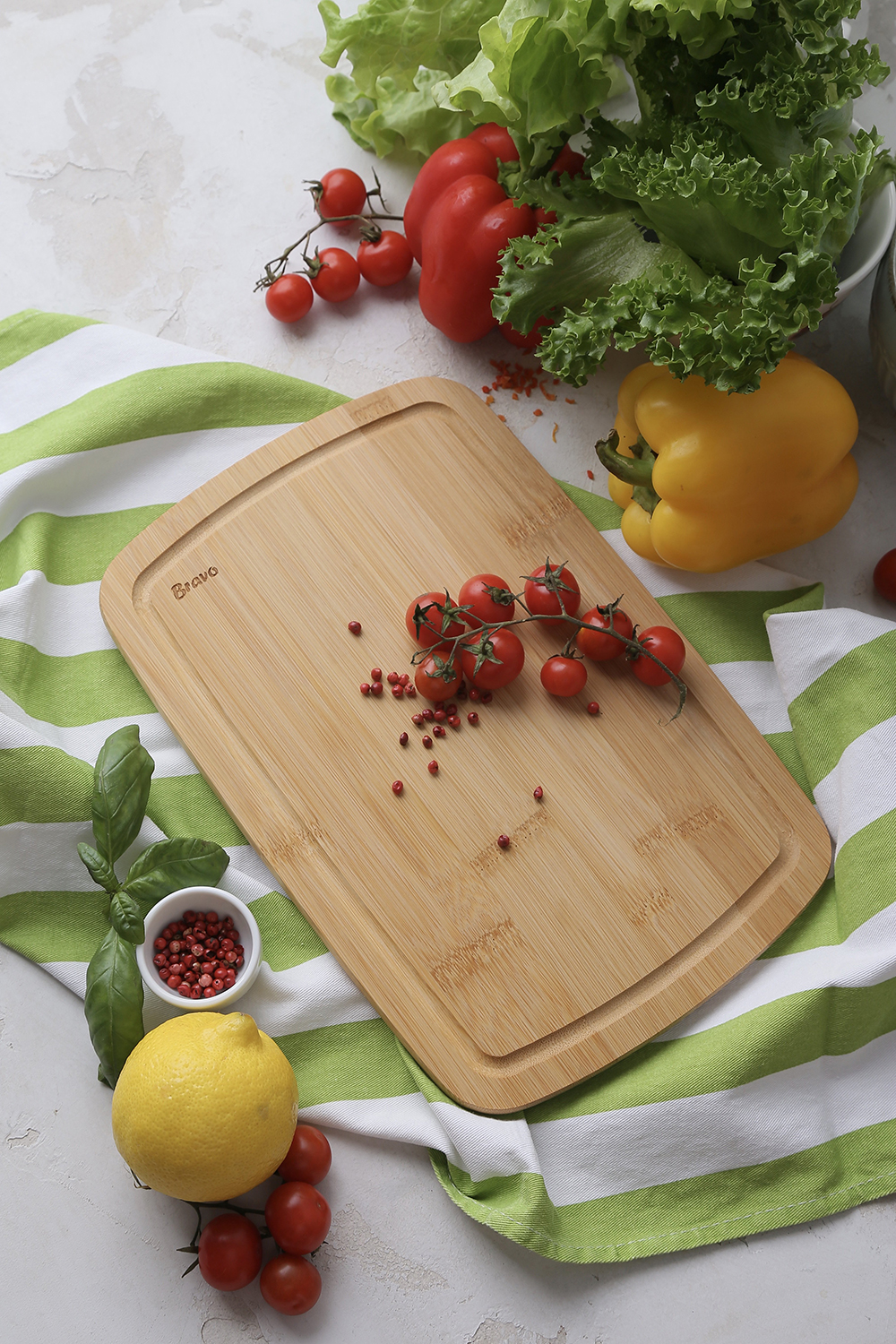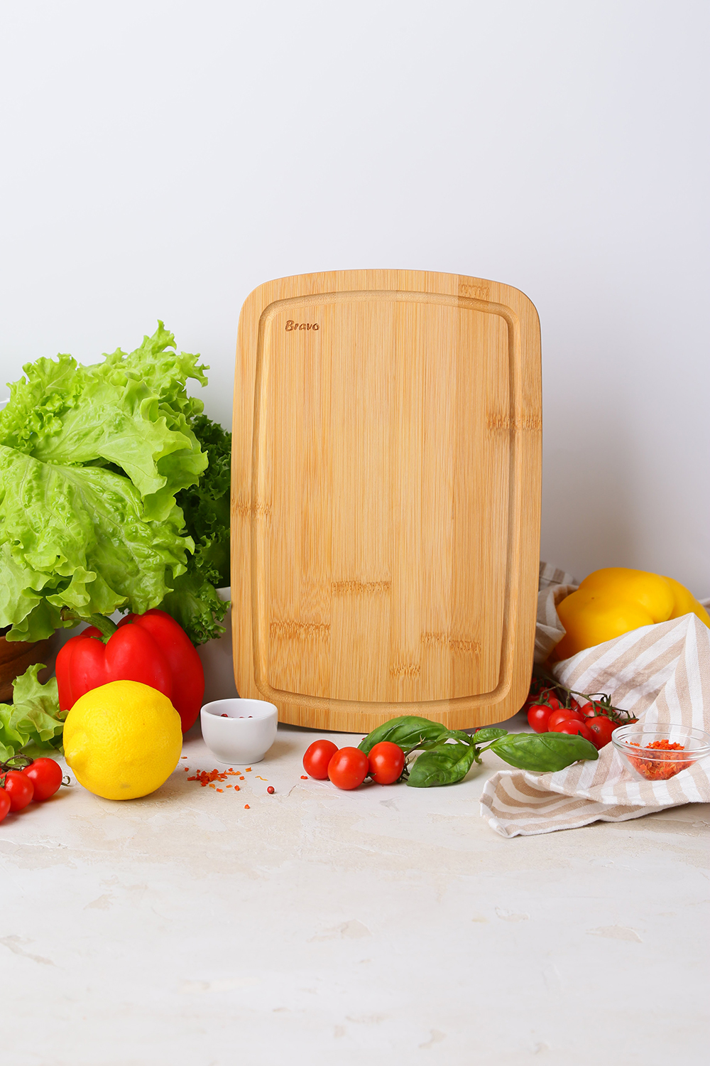 Бамбуковая разделочная доска отлично подойдет для обработки и нарезки любых продуктов. Её размер составляет 30х20х1 см. Доска с желобком удобна и практична в использовании, а за счет того, что бамбук - экологичный, долговечный, антисептический материал, разделочная доска довольно прочная, устойчива к влаге, механическим повреждениям, надолго сохранит лезвие ножа острым. Она легкая, гладкая. Устойчива к перепадам температур. Легко заменит подставку под горячее. Доска разделочная не нуждается в особом уходе и хранении, быстро высыхает после обработки, посторонние запахи не впитывает. Разделочная доска – простая, элегантная, гармонично вписывается в обстановку современной кухни, дает простор для фантазий при приготовлении любых блюд. Работать на такой доске – одно удовольствие!