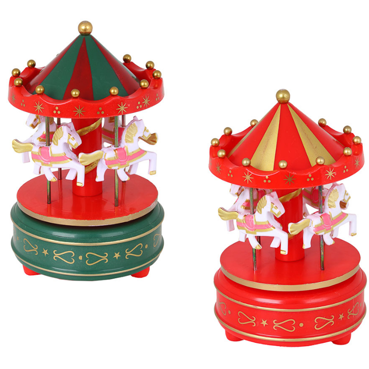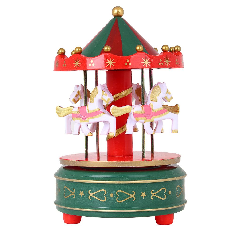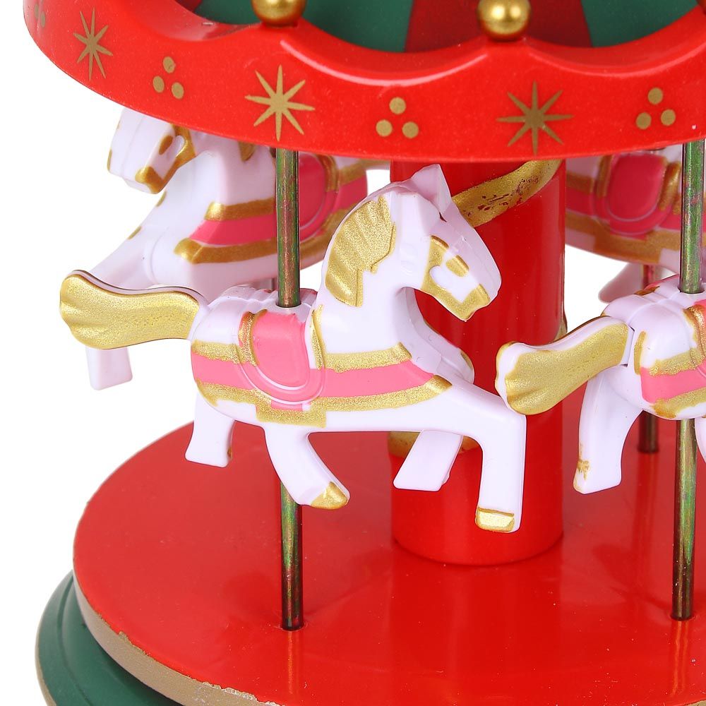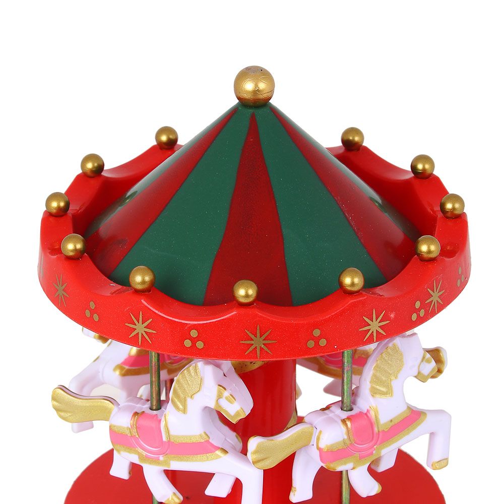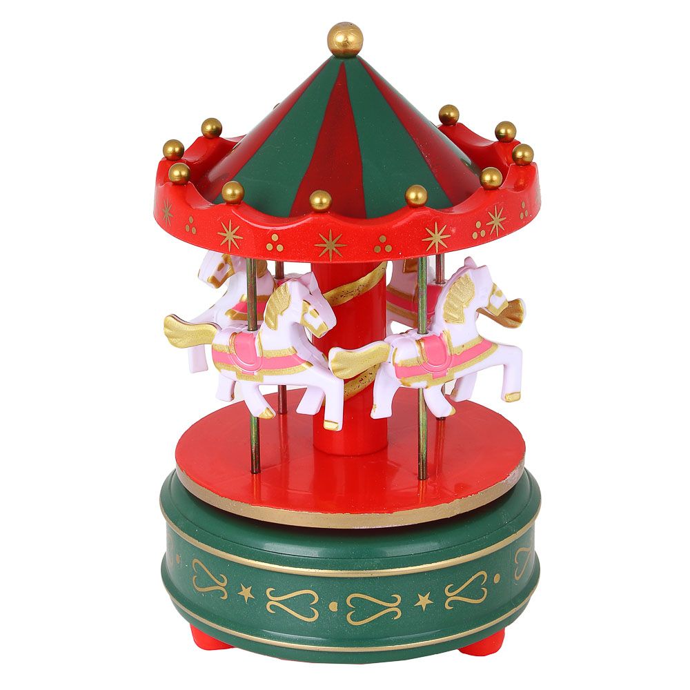 Музыкальная карусель с лошадками отлично смотрится в любом интерьере. Платформа вращается и играет спокойную приятную колыбельную. Легко заводится вращением платформы по часовой стрелке. Высота карусели - 18 см. Идеально подойдет для подарка ребенку или новорожденному.