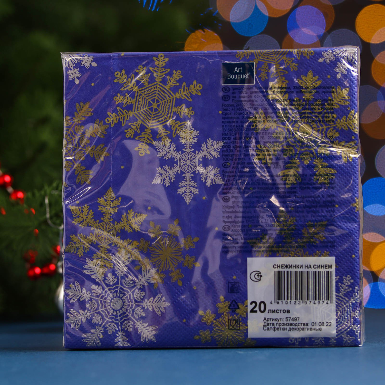 Салфетки ART BOUQUET Снежинки на синем