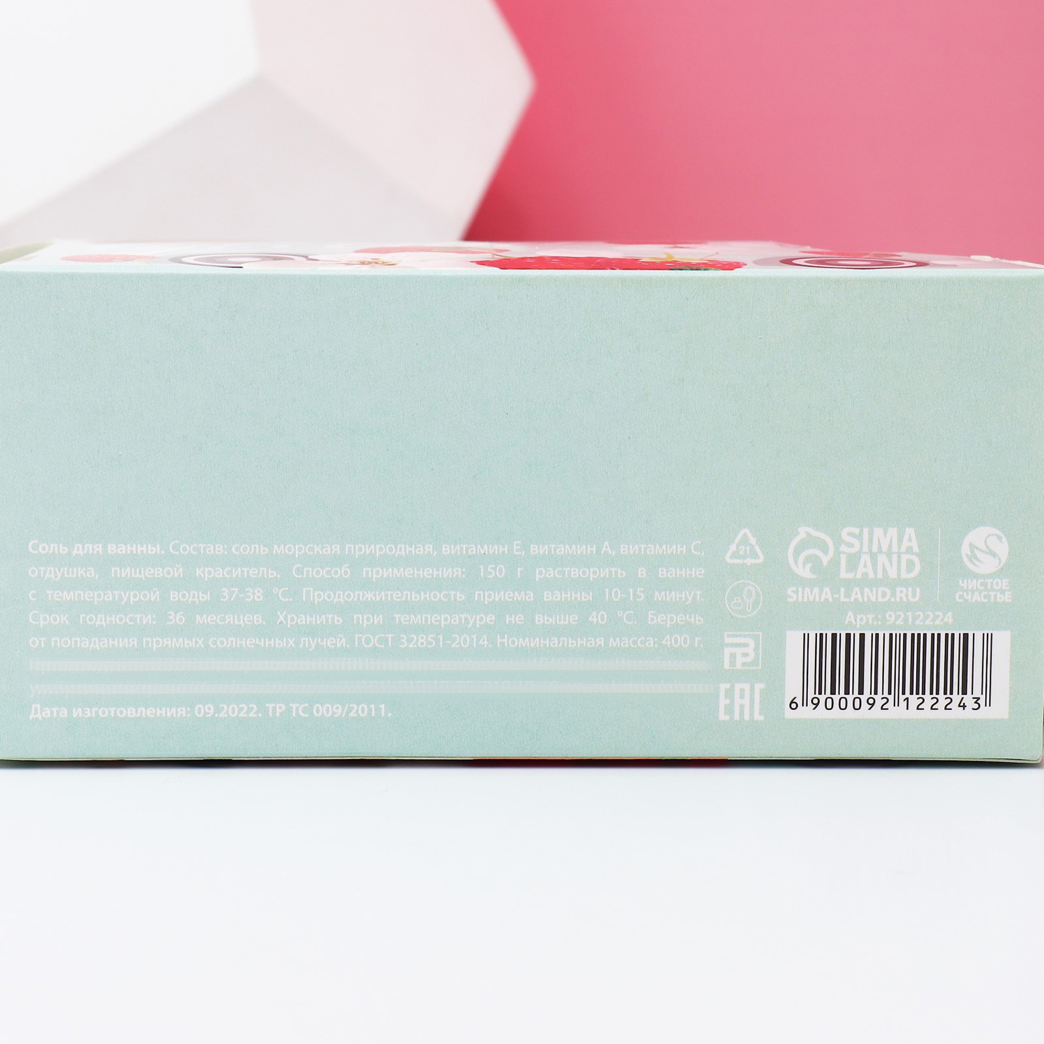 Состав: соль морская природная, витамин Е, витамин А, витамин С, отдушка, пищевой краситель.