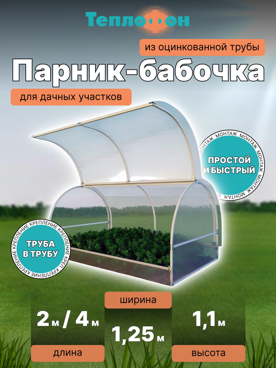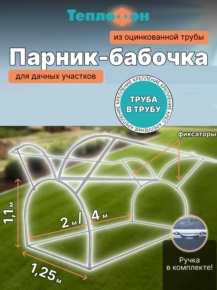 - парник Бабочка изготавливается из стальной сварной оцинкованной трубы 20х20мм