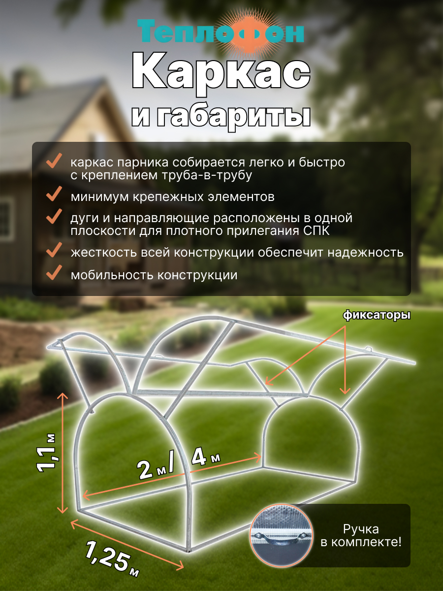 Только каркас! Поликарбонат и кровельные саморезы в комплект поставки не входят и приобретаются отдельно!