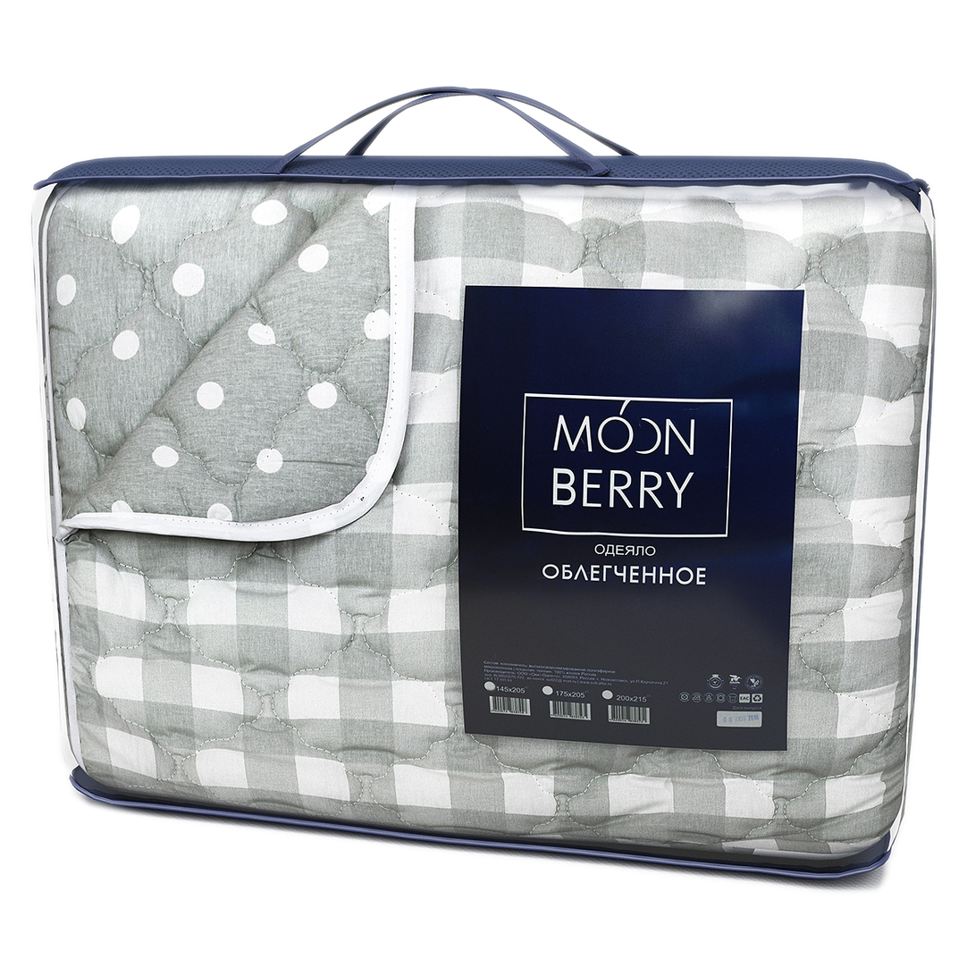 Коллекция Moonberry - это премиум-серия постельных принадлежностей, выполненная из высококачественных тканей. Одеяла Moonberry совмещают чехол из высококачественного поплина (100% хлопок) и наполнитель – искусственный лебяжий пух. Хлопок дарит изделию гигроскопичность, отсутствие статики, устойчивую окраску, а искусственный лебяжий пух отвечает за антиаллергенность, легкость, мягкость, тепло и практичность.