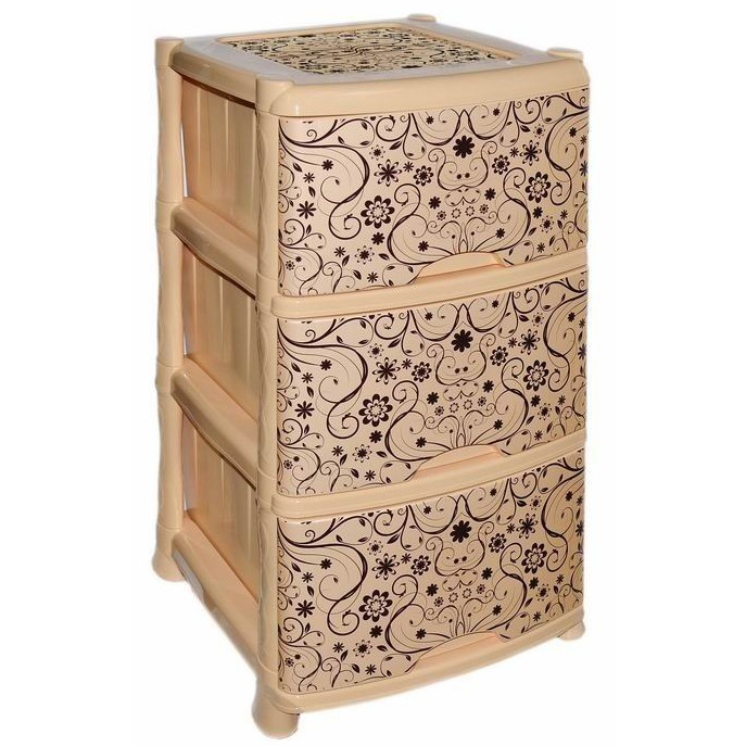 Комод из пищевого пластика VIOLET с тремя выдвижными ящиками предназначен для хранения вещей, различных мелочей, принадлежностей, игрушек, косметики, аксессуаров или продуктов питания. Комод гармонично впишется в интерьер любой комнаты. Легкий и вместительный, он поможет обеспечить порядок в квартире, доме или на даче, избавит от разбросанных игрушек или одежды, убережет продукты от пыли и заветривания. Комод-этажерка прост в уходе и легко моется. Он подойдет для кухни, гостиной, спальни, детской, прихожей, гардероба или ванной. Пластиковый комод имеет вместительные ящики-контейнеры для хранения, благодаря которым можно сэкономить пространство. Комод легко собирается, доставляется в индивидуальной коробке. Передние панели комода декорированы по технологии IML (вплавляемая этикетка) для создания индивидуального стиля. Благодаря небольшому весу, комод мобильный - его легко переставить в другое место. Не рекомендуется размещение пластикового комода вблизи батарей центрального отопления и электрических обогревателей.