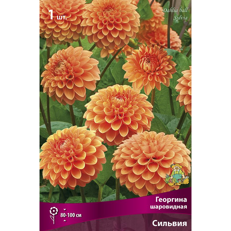 Шаровидные георгины – растения высотой 100-110 см, нуждаются в подвязке и опоре, цветут обильно и продолжительно. Цветы – необычные махровые шары, состоящие из плотных лепестков, свернутых в расширяющуюся кверху трубочку. Лепестки имеют тупые или скругленные кончики и слегка загнутую форму. Диаметр цветков 8-20 см. Это типично срезочные растения, дольше других стоят в вазе, идеально сохраняют форму и безупречный свежий вид. Сильвия - высота растения 80-100 см. Яркие оранжевые цветы на длинных стеблях. Цветение обильное. Красиво смотрится в срезке.