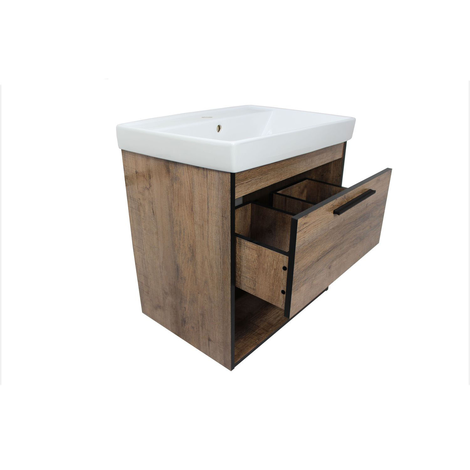 Подвесная тумба под раковину коллекции Fordo от бренда Leman – привлекательный вариант для ванной комнаты. Современная мебель для ванны сочетает не только стиль, надежность и практичность, но и натуральные материалы. Корпус и фасад тумбы под раковину выполнен из ламинированной древесно-стружечной плиты (ЛДСП).
