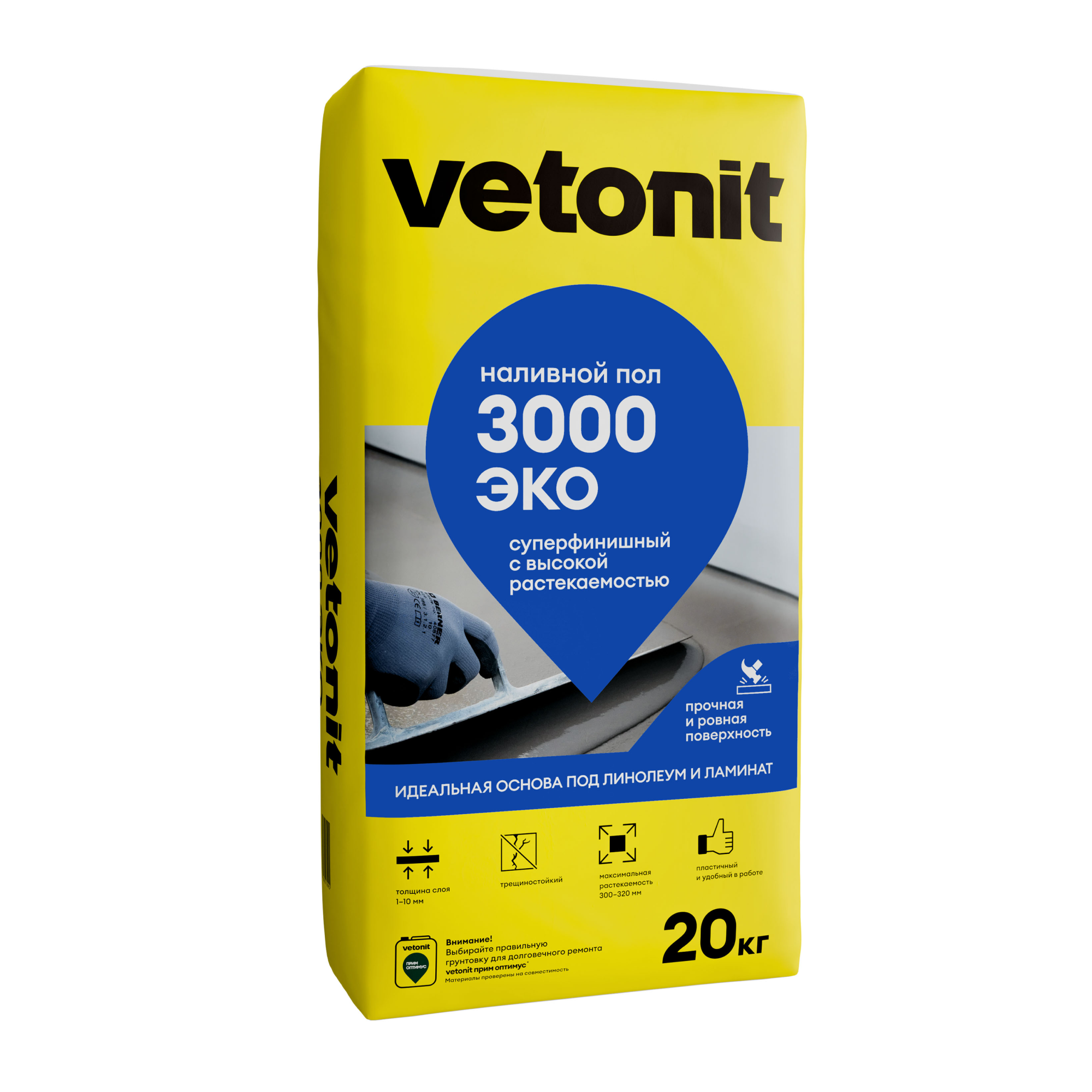 Vetonit 3000 Eco предназначен для суперфинишного выравнивания пола внутри помещений под дальнейшую укладку покрытия. Удобен в работе за счет оптимальной текстуры и максимальной растекаемости наливного пола. Мелкофракционный наполнитель, входящий в состав продукта, позволяет создать прочную гладкую поверхность, что особенно важно при укладке тонких напольных покрытий. Наливной пол подходит дальнейшую укладку различных напольных покрытий в жилых и общественных помещениях, и также прекрасно впишется в систему «Теплый пол». Благодаря специальной формуле Vetonit 3000 eco позволяет снизить углеродный индекс (C02) при производстве до 27%, по сравнению с Vetonit 3000.