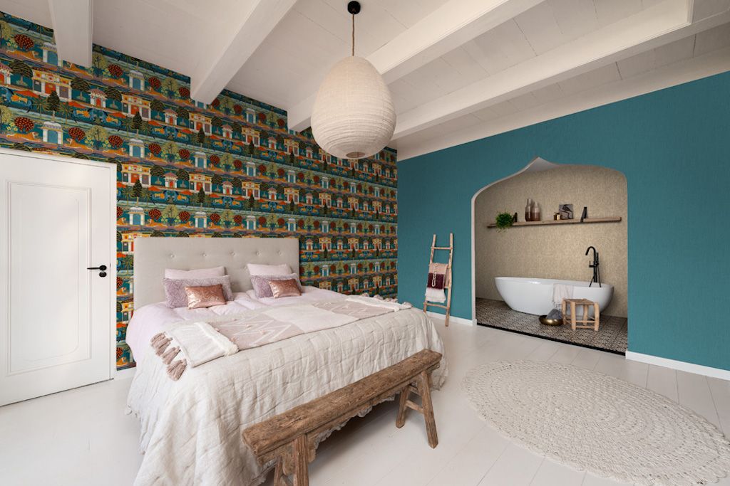 Индия — страна ярких сари и фестиваля красок Холи, поэтому при работе над коллекцией Indian Style , бренд Rasch выбрал самые сочные оттенки из палитры. Благодаря жизнерадостной фуксии, бирюзовому и лимонному, сюжет с королевским садом и утонченный орнамент выглядят современно, и не требуют поддержания этнической нотки в интерьере. Разумеется, любители сдержанных расцветок найдут здесь достаточно серо-бежевых вариантов. А если Вы равнодушны к теме Индии, можно выбрать геометрической принт или отличные однотонные обои.