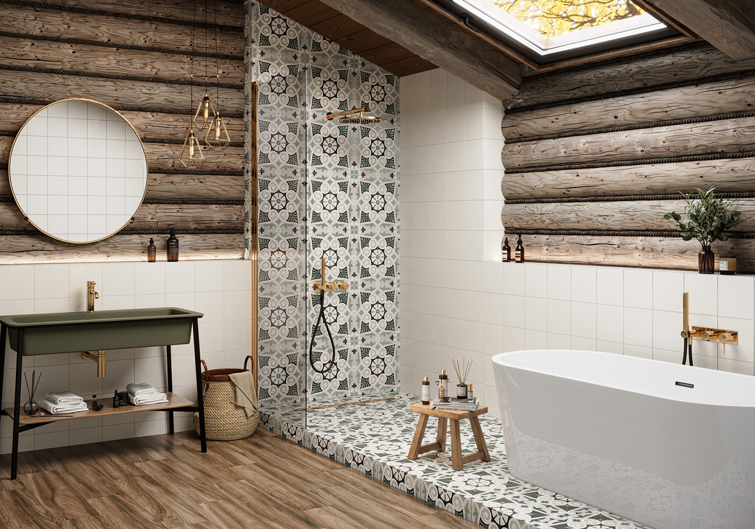 Мода на плитки классического размера актуальна как никогда, ведь основным трендом этого года является сочетание небольших плиток с крупноформатным керамогранитом или альтернативным сочетанием с текстурой древесины. Если раньше пэчворк использовался, как правило, в ретроинтерьерах, то сейчас популярность плиток в этом стиле с каждым годом растет.