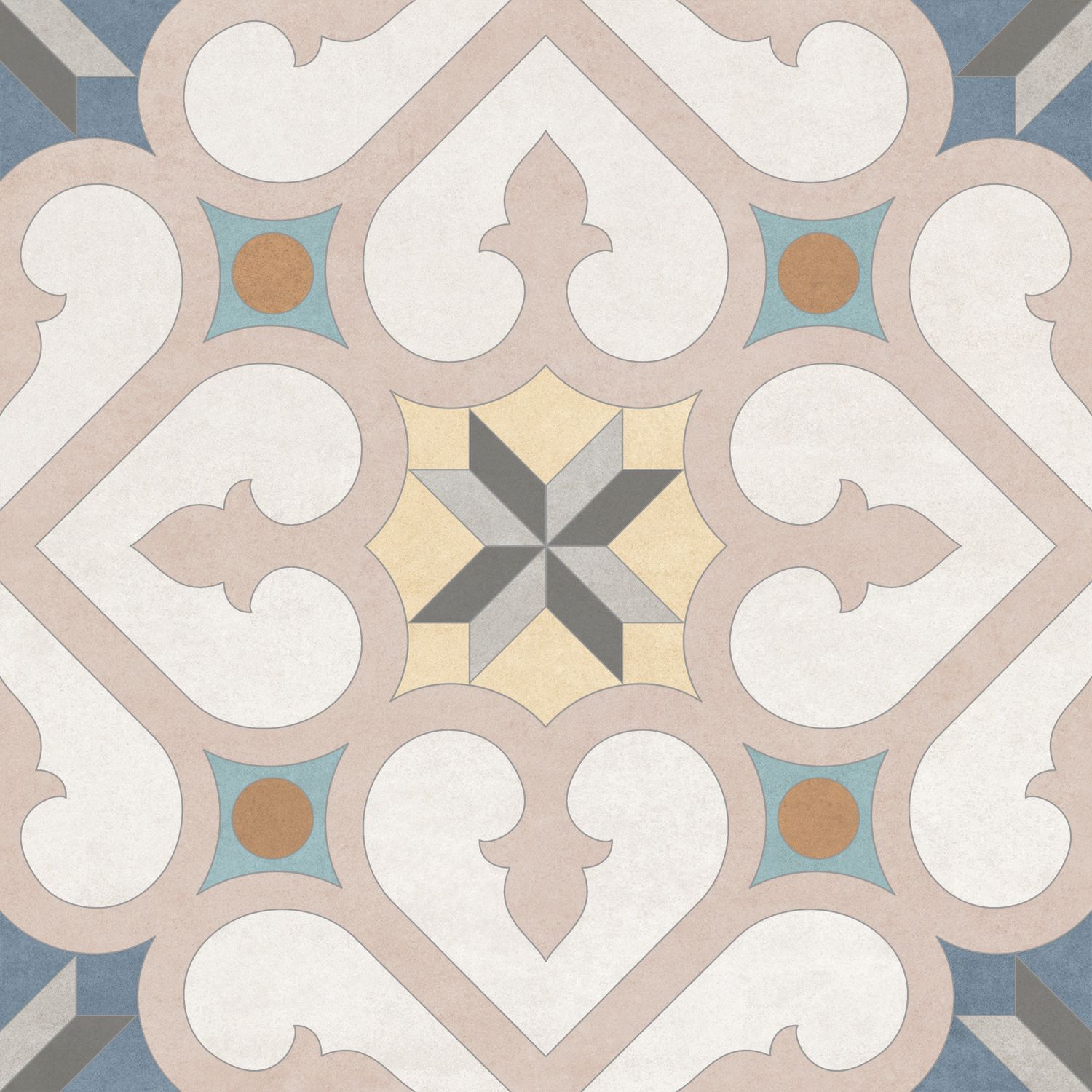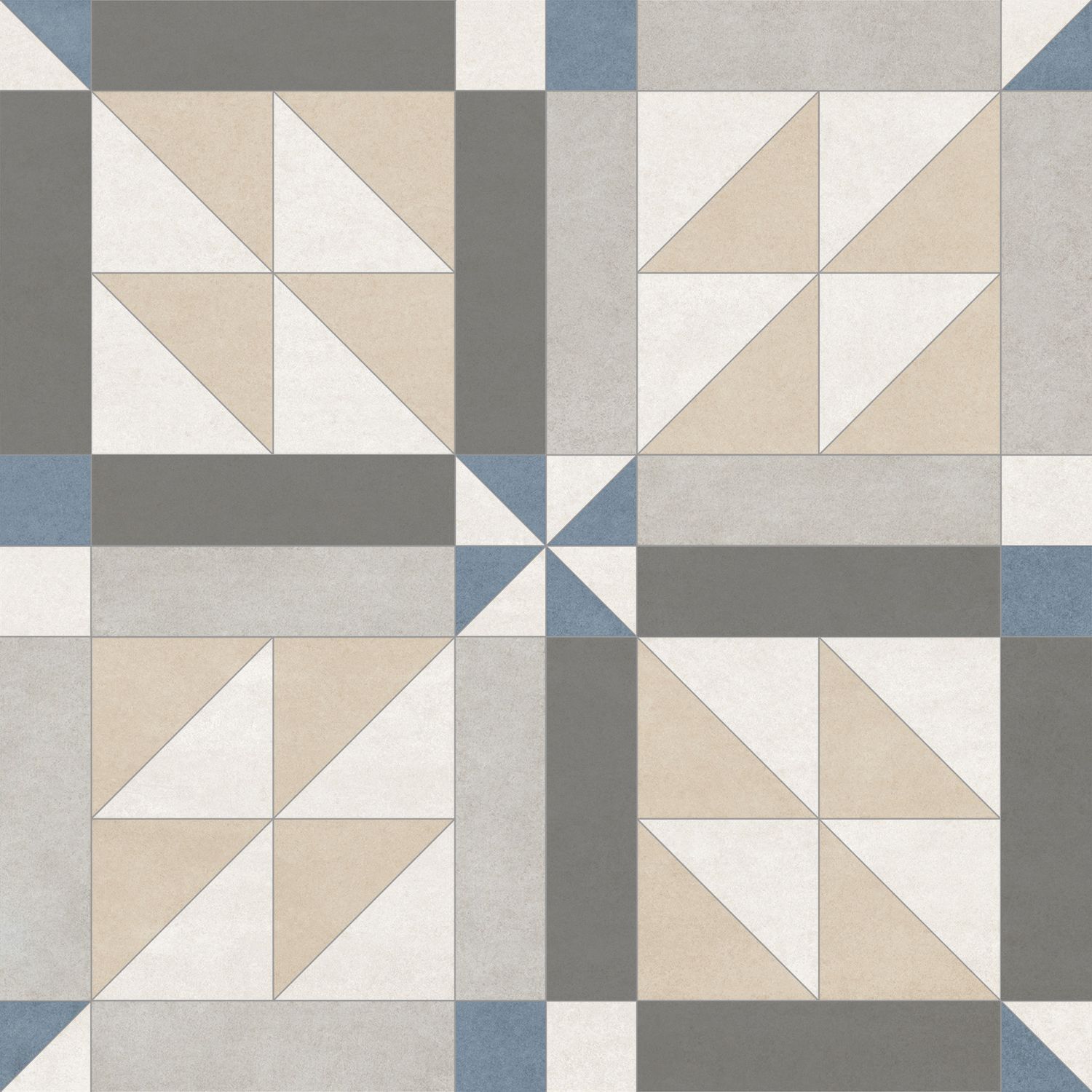 Также дизайнеры любят небольшой формат плиток, ведь с ним можно использовать цветную затирку и создать уникальное пространство. Поэтому дизайнерами бренда NewTrend была создана коллекция матового керамогранита Design Art в формате 200x200. Она включает в себя 40 артикулов, из них: 9 базовых плиток с текстурой микроцемент, 4 артикула с текстурой мрамора, 23 артикула декоративного массива с узором печворк, которые складываются в единый узор и 4 артикула в виде разнообразных миксов с узорами. Mix 1 и 2 реализованы на базе цвета керамогранита Light grey, Mix 3 и 4 — на базе Ivory.