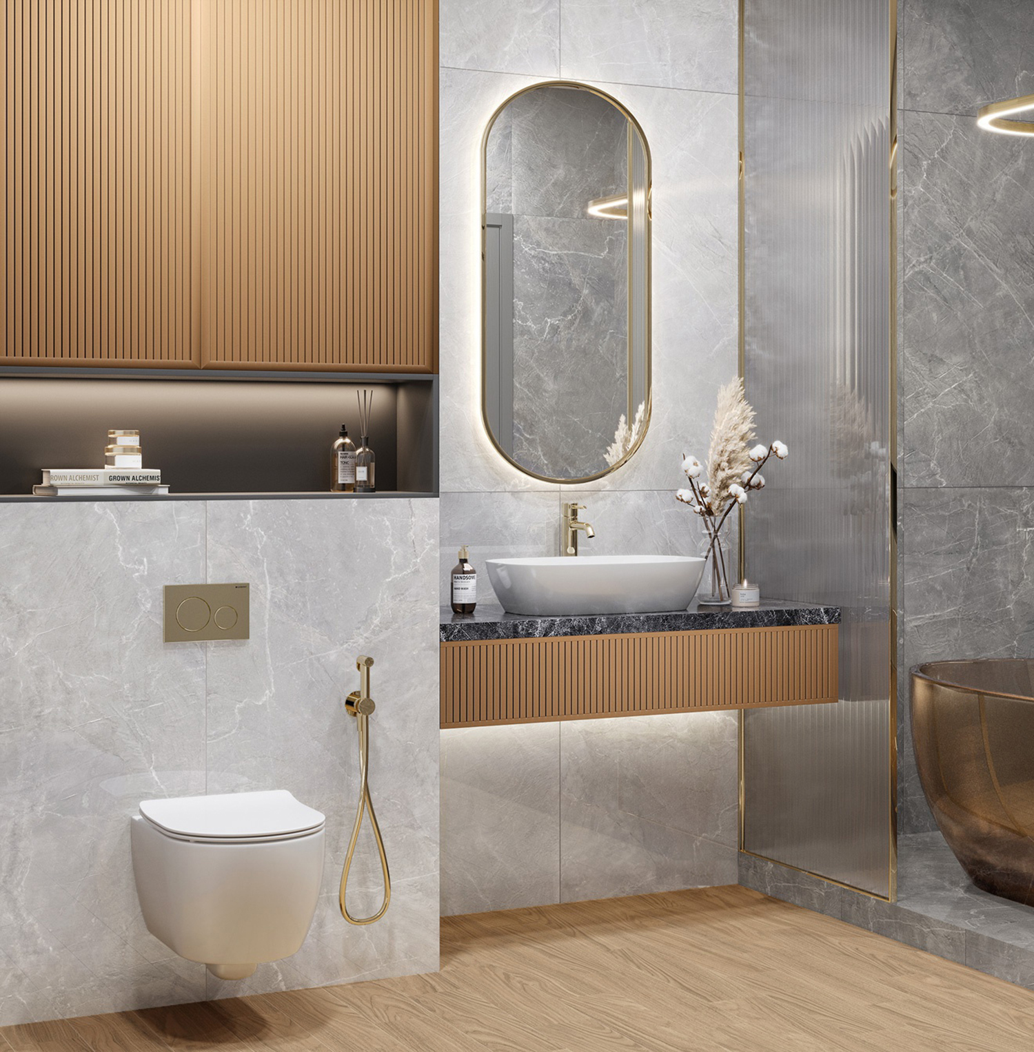 В соответствии с развитием керамической моды и стиля дизайнеры бренда NewТrend разработали коллекцию полированного керамогранита Terra в формате 600х1200 мм. Реалистичные оттенки и узор натурального камня дополнительно усиливает полированная поверхность. Коллекция представлена в трех цветах: темный вулканический графит, гранитный серый и песчаный бежевый оттенок. Края керамогранита ректифицированные, что позволяет осуществить укладку с минимальным швом.