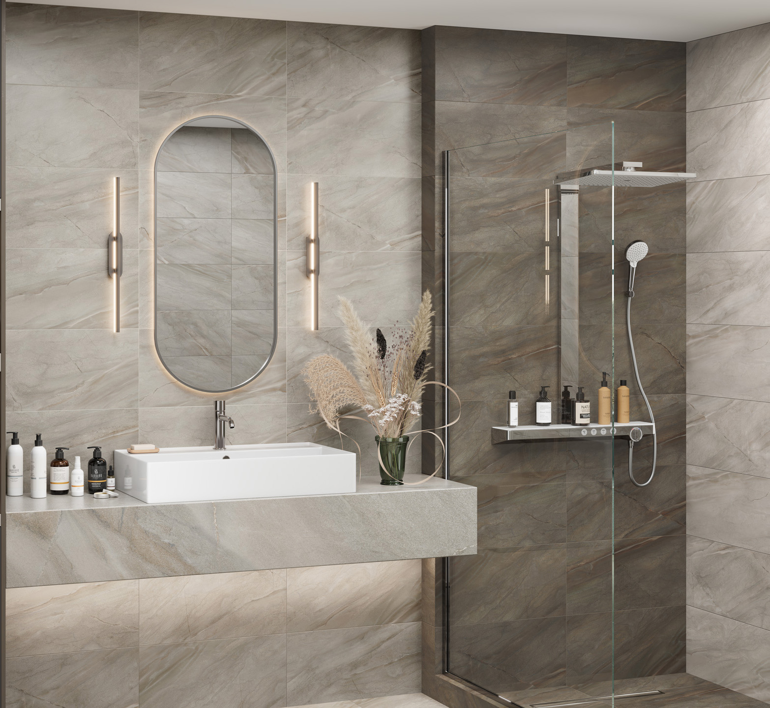 Nepal — это керамогранит в формате 300х600 мм с матовой поверхностью с эффектом carving. За счет своего универсального размера он может быть применен как в отделке стен помещений, так и в качестве напольного покрытия. Керамогранит с текстурой камня в скандинавском стиле, гармоничный и сдержанный, с богатой многоцветной текстурой, плавными градиентами и деликатными прожилками. Такое сочетание в текстуре создает на поверхности оригинальные графические вариации, позволяющие создать оригинальный дизайн пространства.