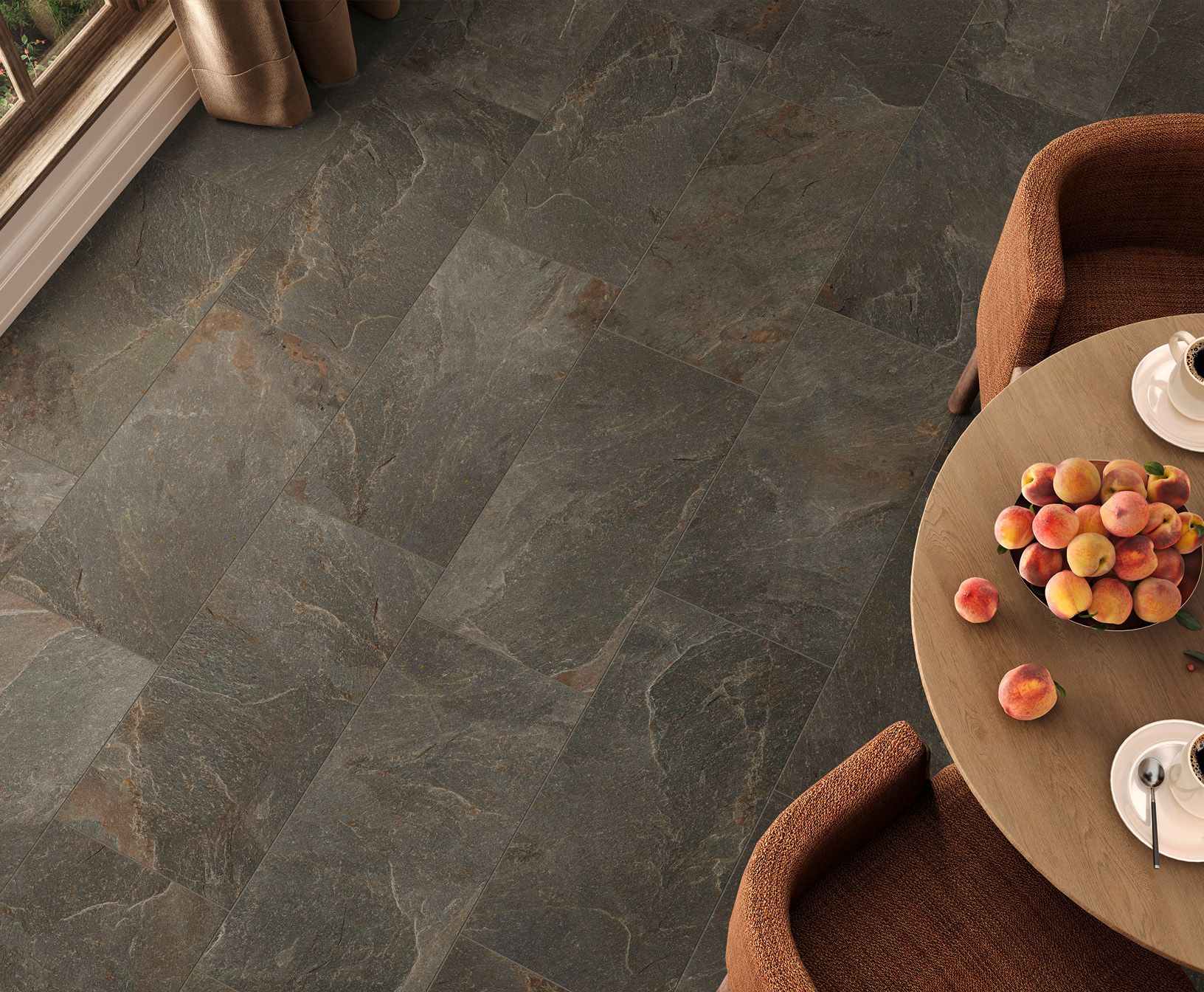 Самая долгожданная новинка этого года, которая является новым и актуальным трендом керамической моды — это коллекция Stoncrete. Графика кварцита исполнена на рельефной фактуре камня в оригинальной поверхности матовой полировки. За счет того, что объемная рельефная поверхность полируется только сверху по высотам рельефа, получается эффект матового основания с глянцевой каменной фактурой. Такой дизайн будет эффектно смотреться как в санузле, так и в гостиной зоне TV с дополнительной подсветкой. Эффект лаппатирования присутствует в формате 600x1200 мм, форматы 600x600 мм и 300x600 мм выполнены в матовой поверхности.
