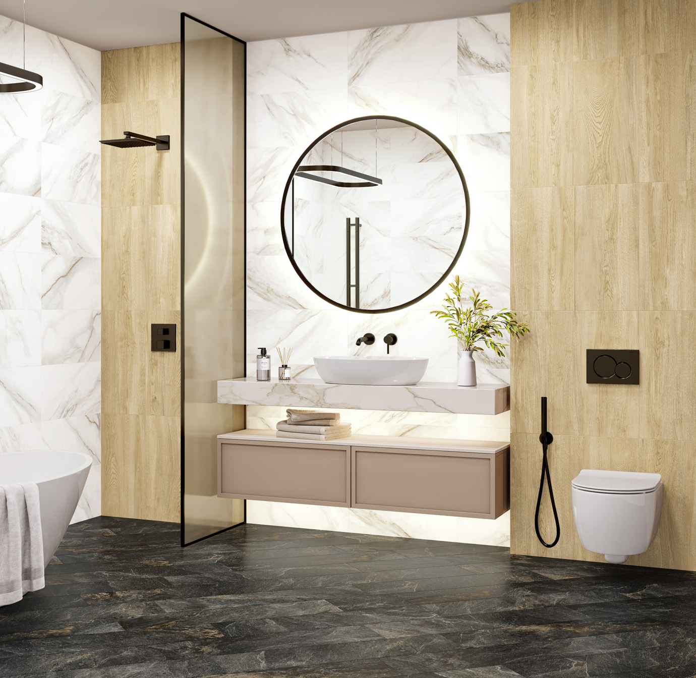 Керамогранит с текстурой дерева орех имеет благородные оттенки, деликатные прожилки, сучки, деревянные кольца и узоры. Текстура в экостиле привлекает внимание благодаря своей элегантной естественности, объединяющей эстетику и домашнее тепло. Деревянный керамогранит универсален, он подходит для креативного комбинирования с мрамором, металлом, штукатуркой или бетоном, он прекрасно подходит, как для внутренней отделки стен, так и в качестве напольного покрытия.