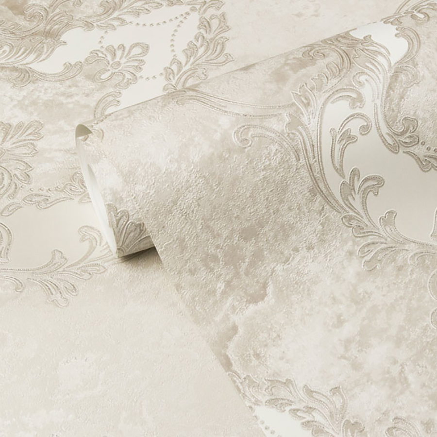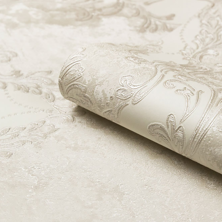 Основной рисунок коллекции «Бриджит» — тиснённый дамаск, нанесённый на фон с текстурой камня. Барочный орнамент обогащён декоративными эффектами: глиттером, перламутром и интерферентными переливами. Они добавляют поверхностям мягкое сияние и подчёркивают роскошный характер серии.