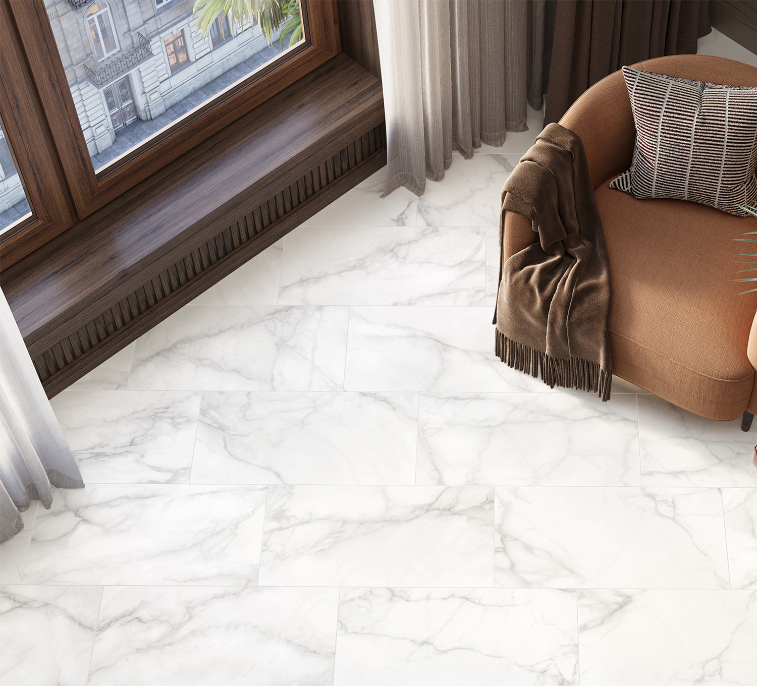Элегантная коллекция с дизайном под классический белый мрамор с серыми и бежевыми прожилками. Универсальность мрамора позволяет сочетать его с другими коллекциями, создавая гармоничные и стильные пространства. Комбинация классического мрамора и минималистичного камня серии Greese создаст контраст в интерьере. Такое сочетание идеально подходит для современных интерьеров с акцентом на текстуры. Белый мрамор в сочетании с теплыми оттенками дерева коллекции Goa создает уютный и элегантный интерьер. Такое сочетание подойдет для спален, гостиных или загородных домов. Комбинирование бетона серии Flagman и классического мрамора Mils создают современный интерьер с акцентом на лаконичность. Такое сочетание идеально для офисов, кухонь или лофт-пространств.