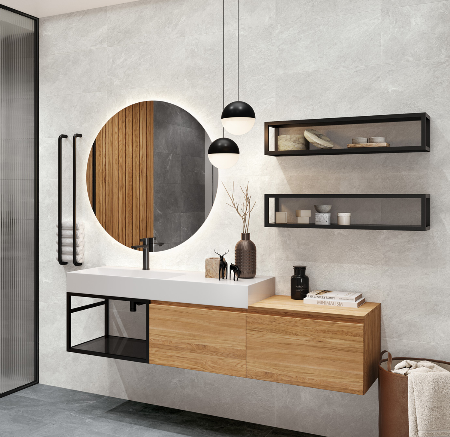 Современная коллекция с элегантной поверхностью минималистичного камня. Доступна в теплом и холодном оттенках. Не ректифицированные края керамогранита подчеркивают его натуральность и универсальность, делая его идеальным для создания стильных и гармоничных интерьеров. Матовая поверхность добавляет интерьеру уюта и естественности, а также практична в уходе. Сочетание камня и мрамора серии Skala с текстурами дерева из коллекции Goa создаст уютный и элегантный интерьер. Это сочетание подойдет для гостиных, спален или загородных домов, добавляя интерьеру тепла и природной гармонии. Комбинация элегантной серии Skala с брутальным камнем коллекции Greese создаст выразительный интерьер с акцентом на натуральные текстуры. Такое сочетание идеально для холлов, ресторанов или открытых площадок, подчеркивая природную красоту материалов.