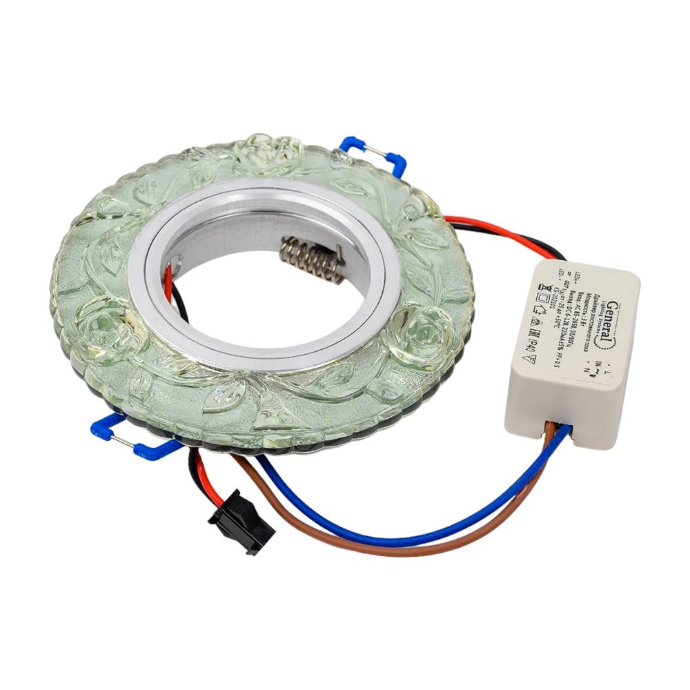 Декоративный точечный встраиваемый светильник со светодиодной подсветкой ТМ General предназначен для точечной подсветки, зонирования и общего освещения помещений. Светильник General Светлая роза — современное решение, в котором учтены все требования. За надежность отвечают материалы с большим запасом прочности. Все элементы конструкции без проблем выдерживают интенсивную эксплуатацию.