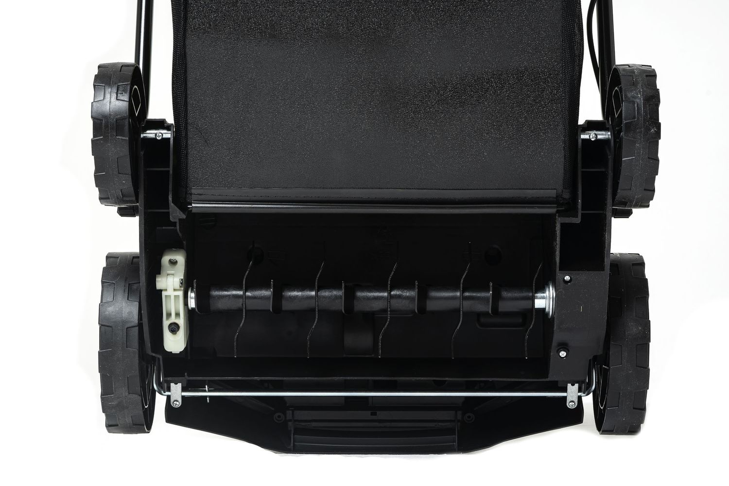 Мощный 1500W аэратор со скоростью вращения вала 3200 оборотов в минуту, с шириной обработки 36 см, позволит Вам быстро обработать Ваш газон. Модель укомплектована 2 заменяемыми валами со спицами и ножами. 5 уровней регулировки глубины обработки почвы: -12, -9, -6, -3, 6 мм. Аэратор оснащен мешком для сбора травы и прочего мусора объемом 45 литров.