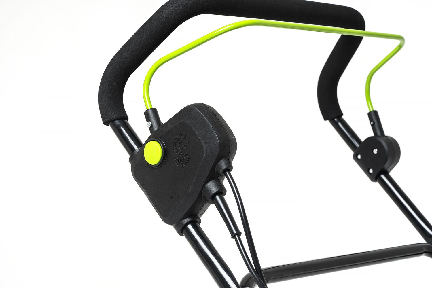 Важным преимуществом данной модели является ширина обработки в 36 см, что оптимально для быстрой обработки большой площади и при этом устройством легко управлять. В отличие от бензиновых аналогов, электрическая модель не имеет вредных выбросов СО2 и не требует обслуживания, такого как замена масла, свечей, фильтров или подготовки огнеопасной смеси бензина и масла. Еще одним плюсом является низкий уровень шума устройства и его малый вес. Для удобства хранения ручка устройства складывается.