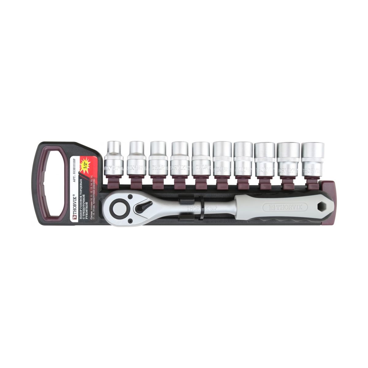 Торцевые головки Thorvik с трещоточной рукояткой 1/2"DR изготовлены с применением технологий, позволяющих передавать усилия, превышающие расчетные по современным стандартам на 30%. Широкий диапазон размеров, типов и профилей, высокая точность обработки, качественная хромованадиевая сталь и устойчивое хромоникелевое покрытие делают инструмент надежным и долговечным.