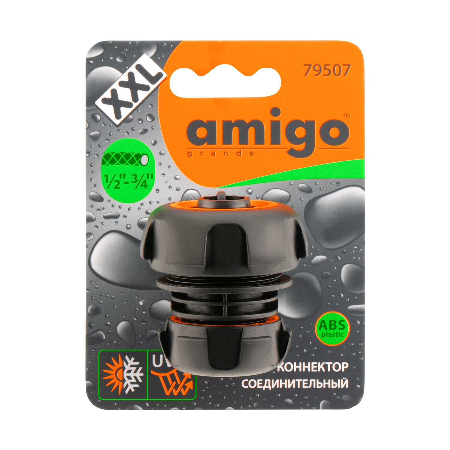 Коннектор соединительный 1/2” – 3/4” с soft-покрытием AMIGO grande серия XXL 79507 предназначен для быстрого соединения шлангов 1/2” и 3/4”. Прочный термостойкий ABS-пластик, устойчивый к УФ-излучению, обеспечивает продолжительный ресурс работы в течение нескольких сезонов.