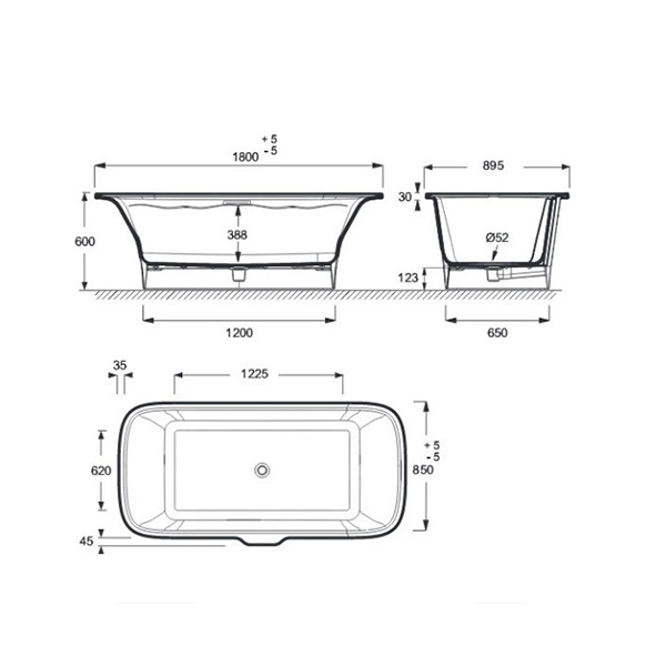 Регулируемые ножки (высота 115–140 мм) позволяют легко установить ванну на любой поверхности без необходимости в каркасах, что значительно упрощает процесс монтажа.
