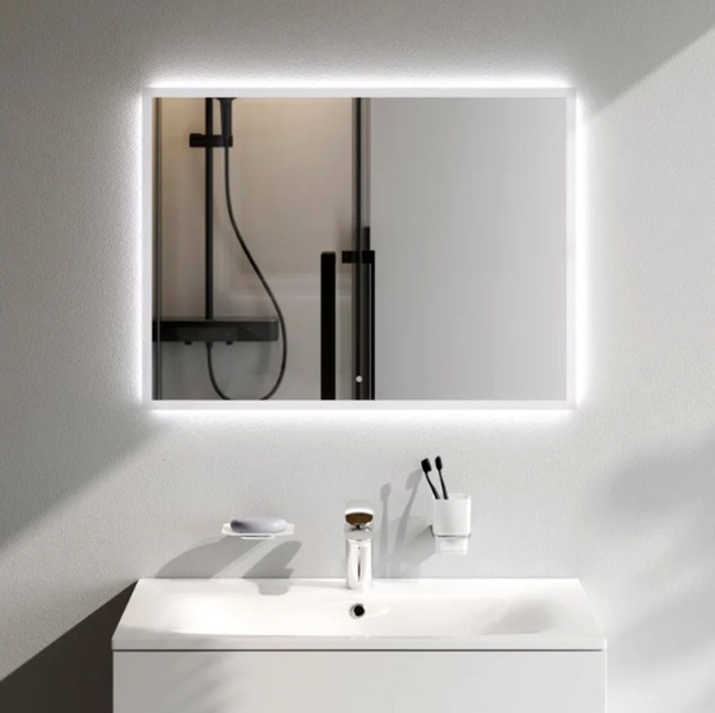 Выверенный геометрический дизайн: ровные поверхности в сочетании с четкими гранями. Ровное рассеянное свечение LED-подсветки для нанесения макияжа. Инфракрасный сенсорный выключатель позволяет регулировать яркость жестом руки без прикосновения к самой поверхности зеркала. Функция антизапотевания создаёт все условия для использования зеркала сразу после принятия душа. На зеркало нанесена противоосколочная защитная плёнка что делает ванную комнату безопасной для детей.