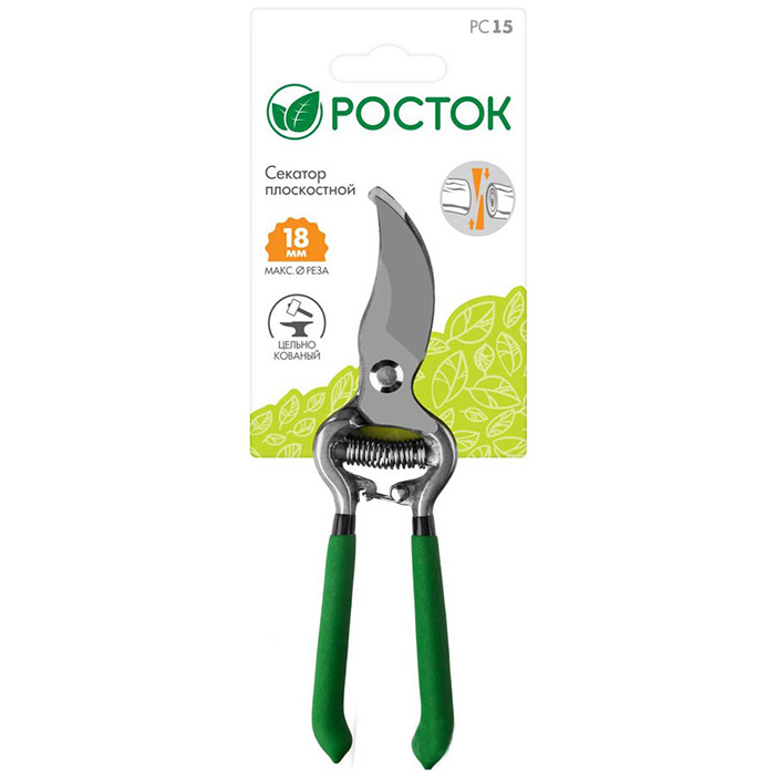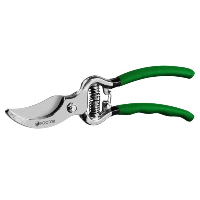 Секатор РОСТОК 423005_z01, применяется для обрезки веток деревьев и кустарников, а также стеблей цветов. Лезвие изготовлено из высококачественной углеродистой стали, остро заточено и закалено. Закругленное опорное лезвие удерживает ветку и обеспечивает дополнительное удобство при срезании. Рукоятки покрыты винилом, поэтому обеспечивают надежный хват инструмента и снижают нагрузку на кисти рук.
