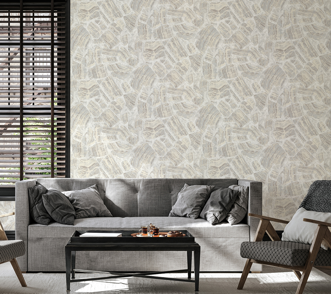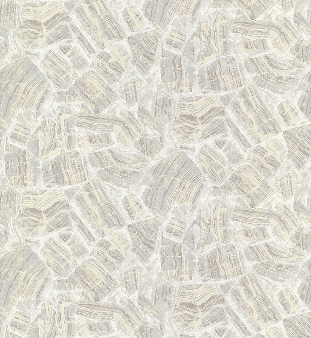 Принт коллекции «Магна» реалистично передаёт структуру мраморного среза: композиция прожилок, реализованная в тонких оттеночных переходах, создаёт ощущение монолитной поверхности. Визуальная глубина узора усиливается декоративными элементами, добавляющими поверхности лёгкого мерцания. Компаньоны органично продолжают основной мотив, сохраняя эстетическую связь с природным камнем.
