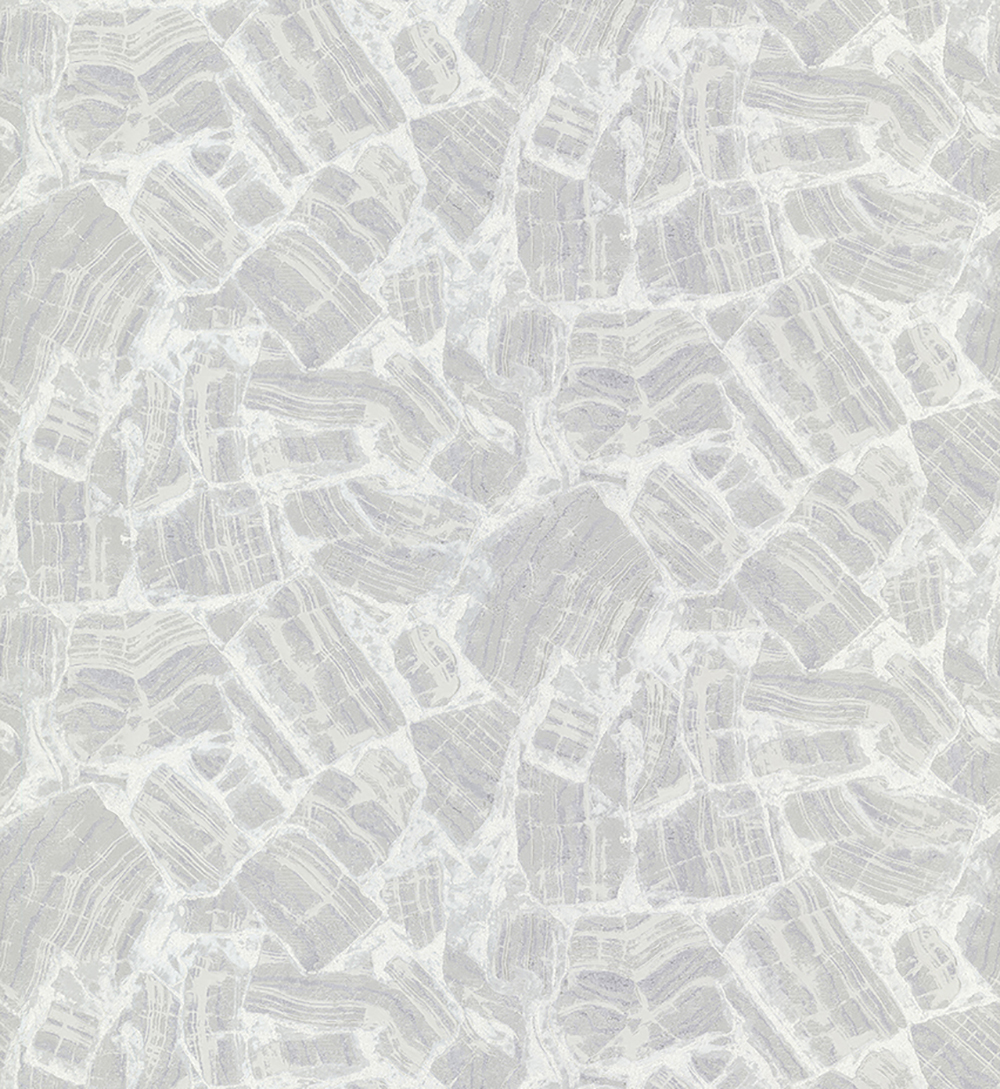 Принт коллекции «Магна» реалистично передаёт структуру мраморного среза: композиция прожилок, реализованная в тонких оттеночных переходах, создаёт ощущение монолитной поверхности. Визуальная глубина узора усиливается декоративными элементами, добавляющими поверхности лёгкого мерцания. Компаньоны органично продолжают основной мотив, сохраняя эстетическую связь с природным камнем.
