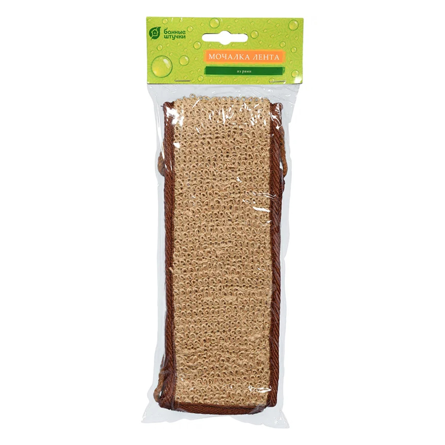 Мочалки из рами (китайская крапива) не такие жёсткие, как из люфы и сизаля. Прекрасно подходят для массажа, являются самыми бережными, так как они мягко отшелушивают кожу, а не обдирают ее. Еще одним достоинством мочалок из рами является их гипоаллергенность, подходит для ежедневного применения. Размер: 66х8,5 см (76х8,5 см с ручками).