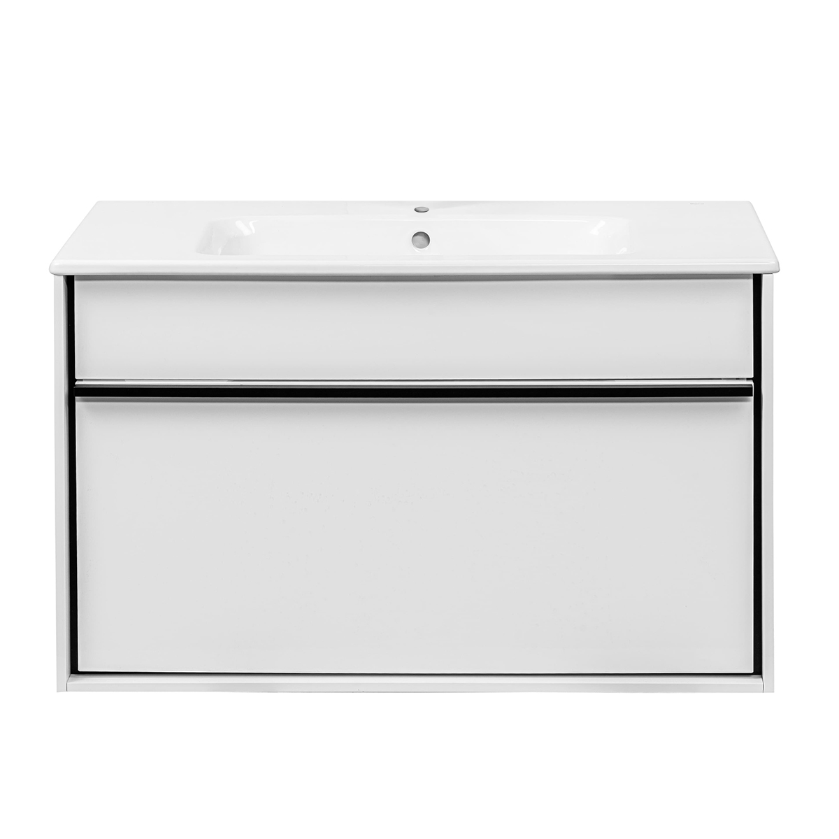 Тумба-умывальник серии Mono представлена в элегантном белом исполнении, гармонируя с любым стилем интерьера ванной комнаты. Модель сочетает современное оформление и функциональные решения, предлагая качественное дополнение для обновленного санузла.