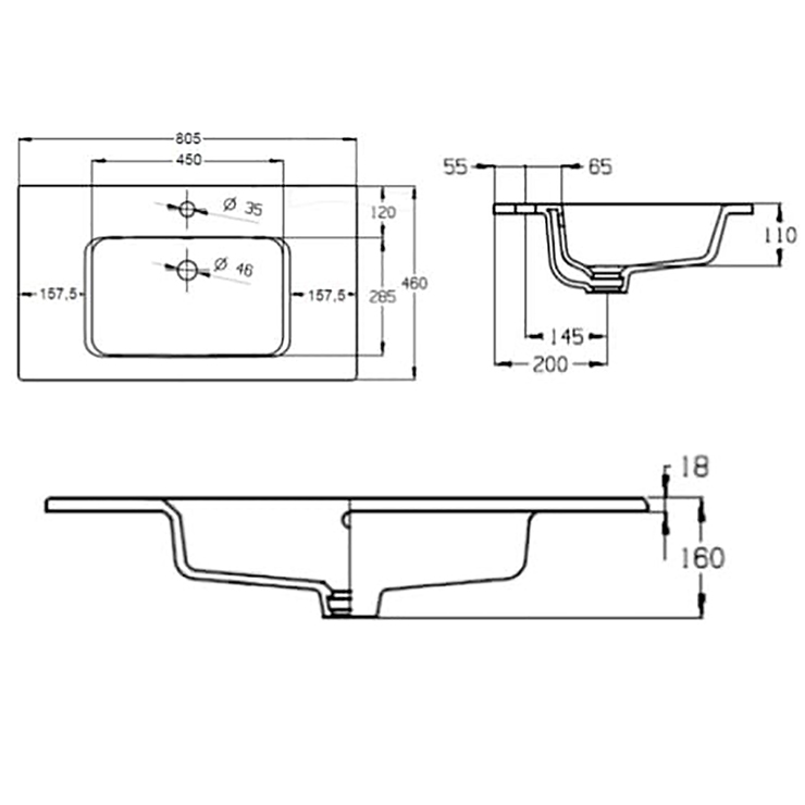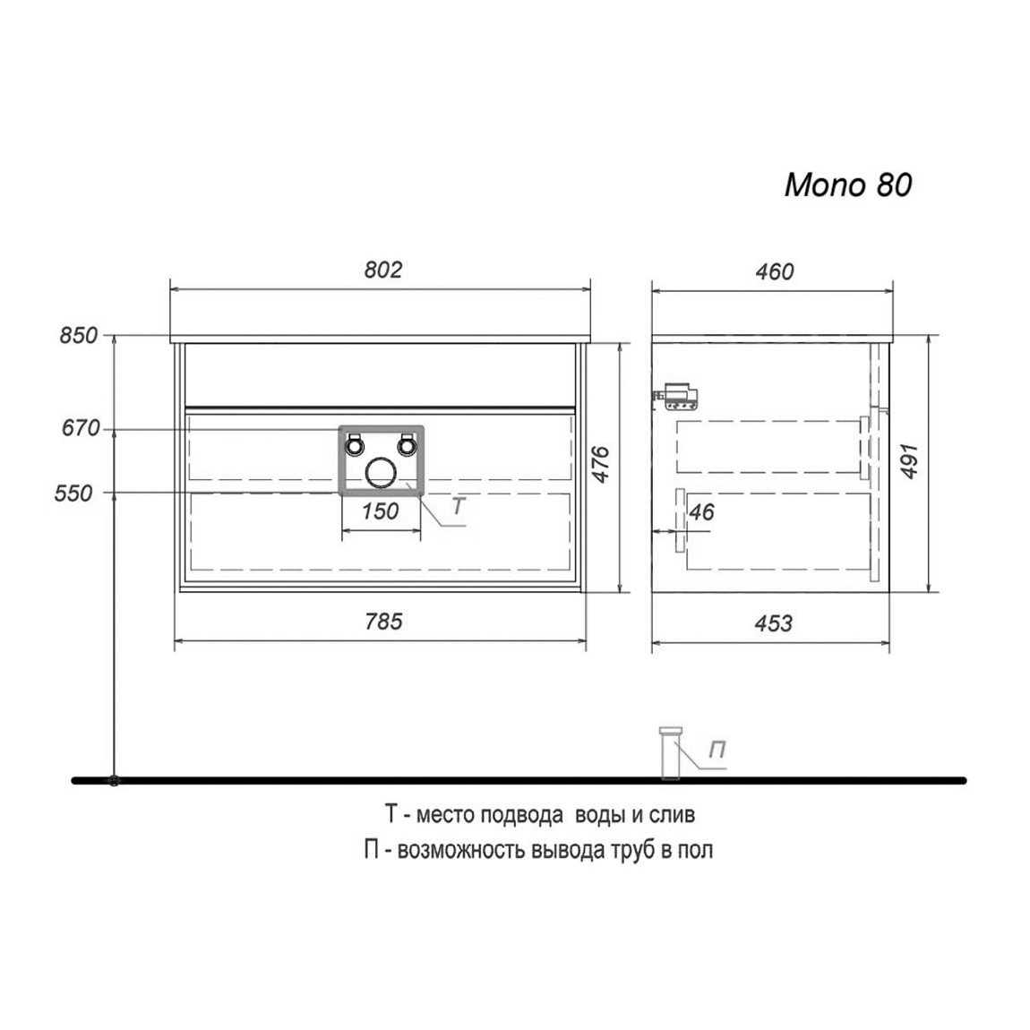 Тумба-умывальник AQUANIKA Mono 80 белый + раковина Gap